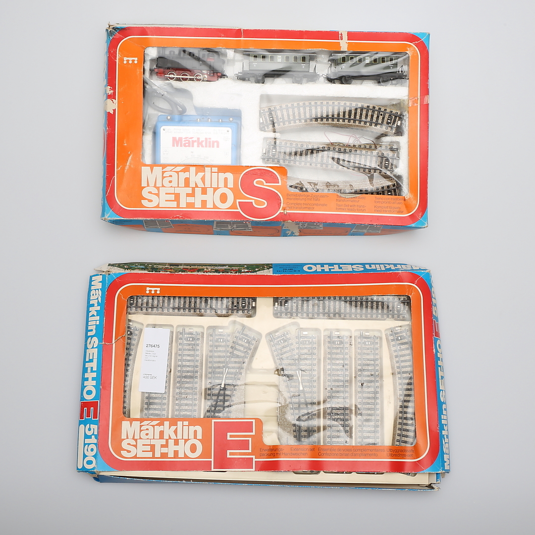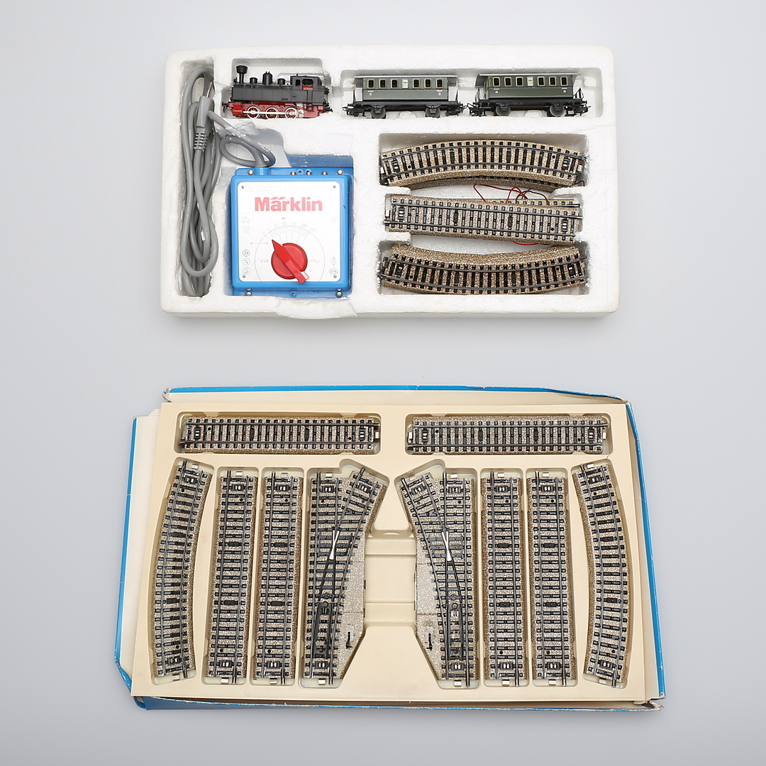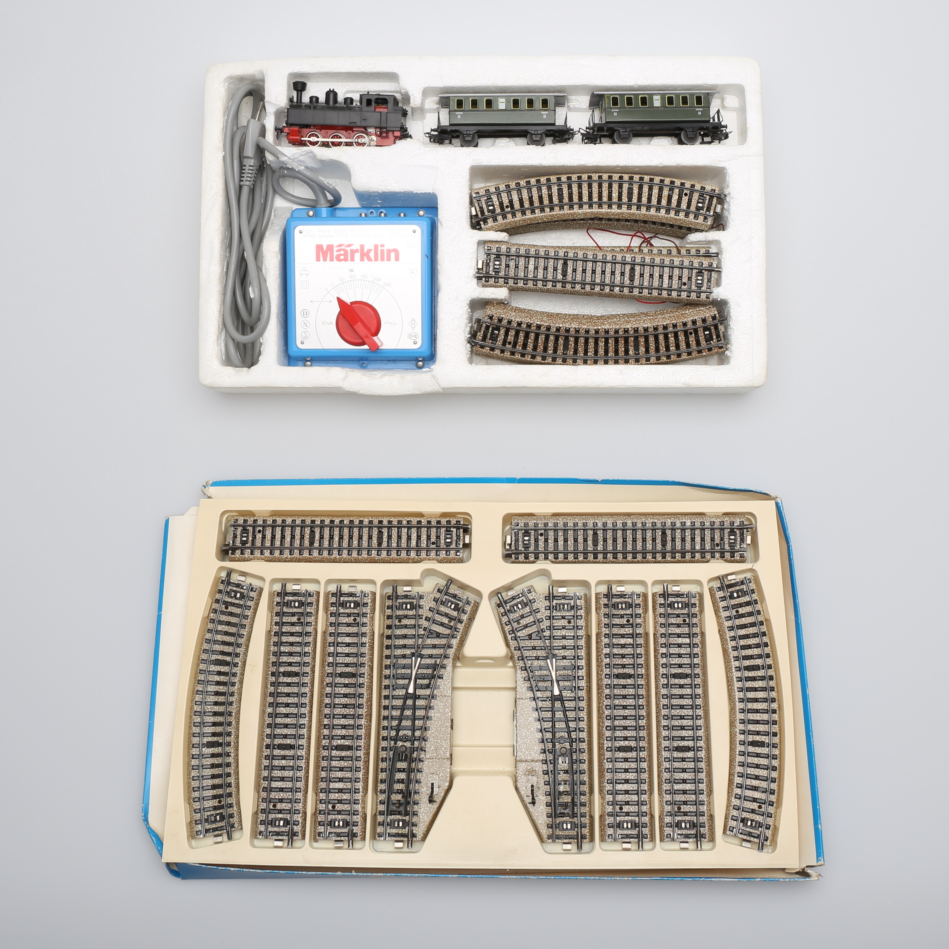 276475. TRAIN TRAIL, Märklin, mit Lokomotive, 2 Wagen und Trafo.