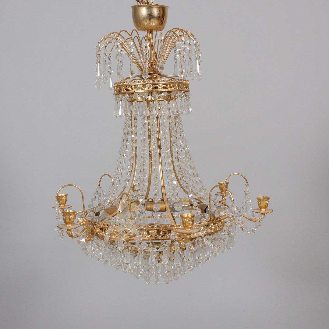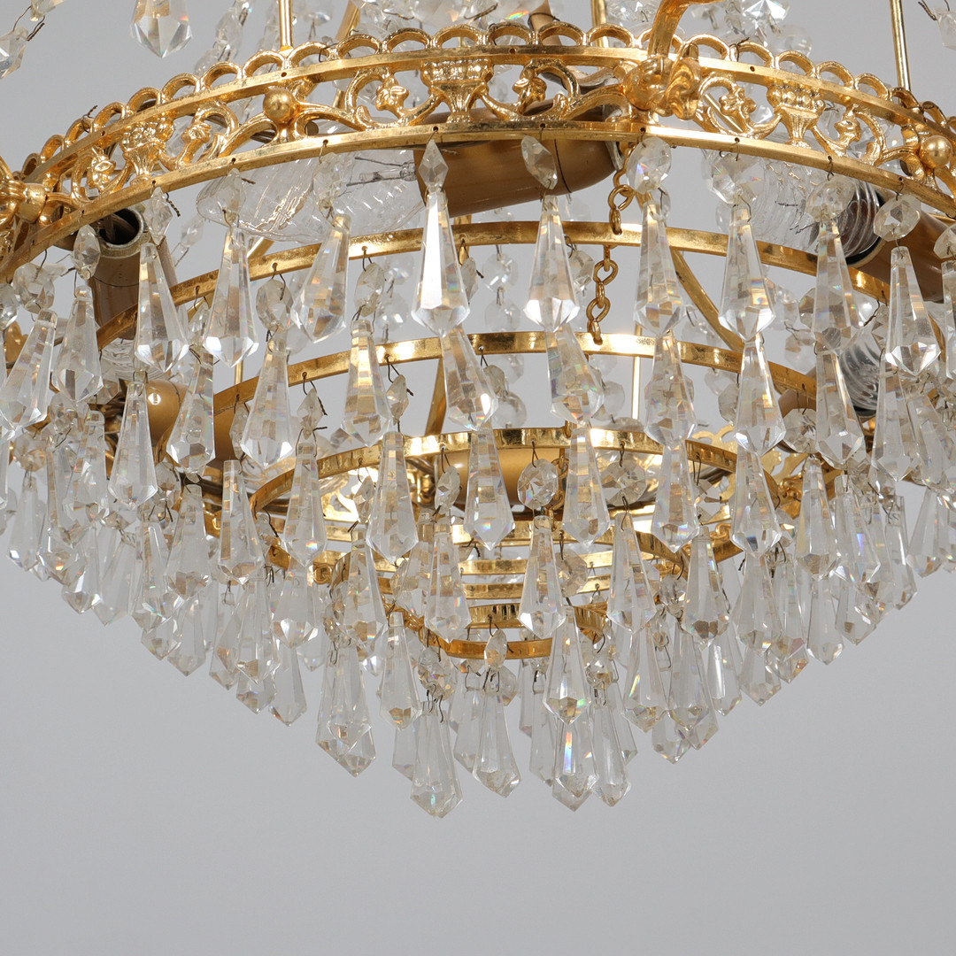 2766110. KRONLEUCHTER, Glas und Metall.