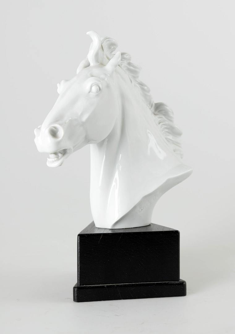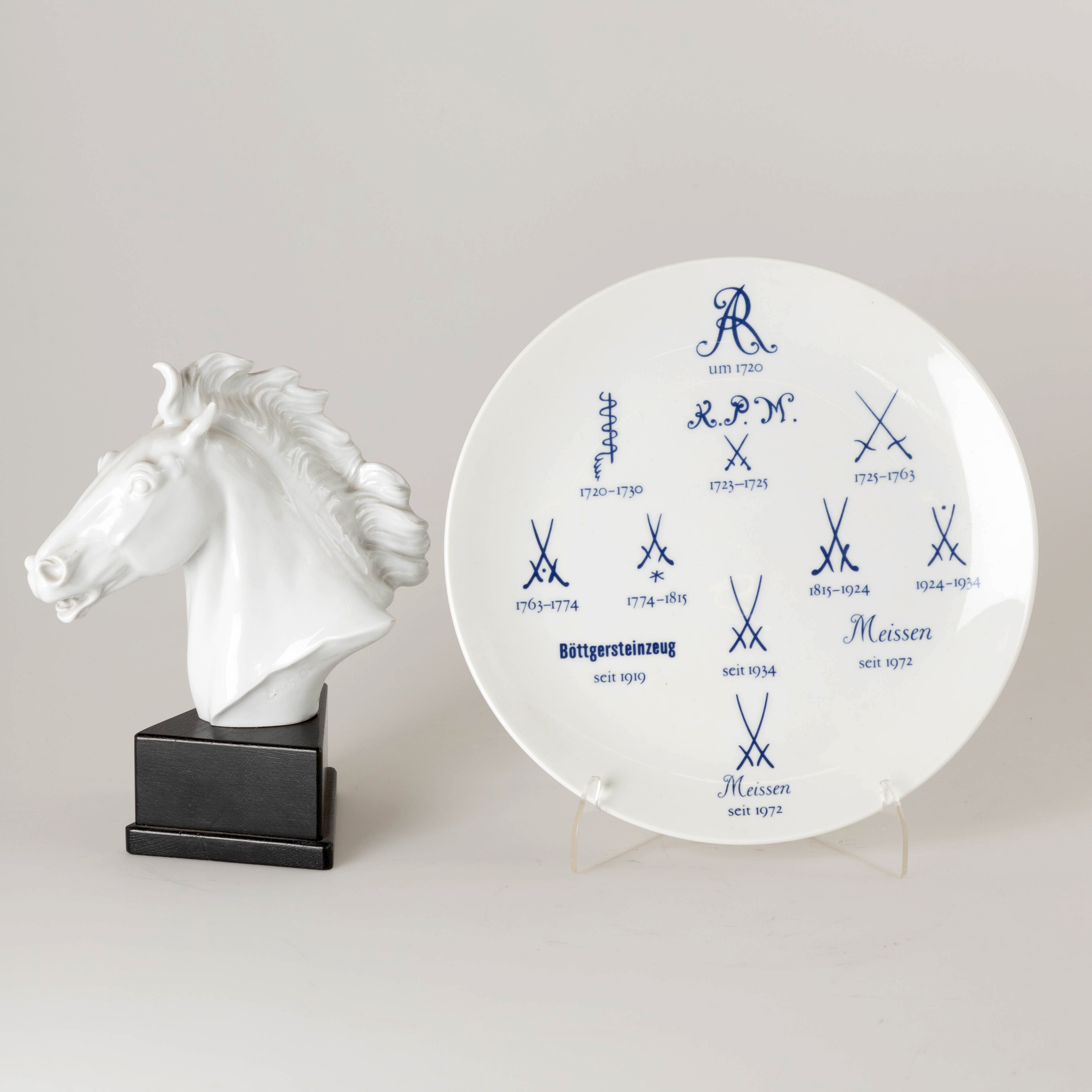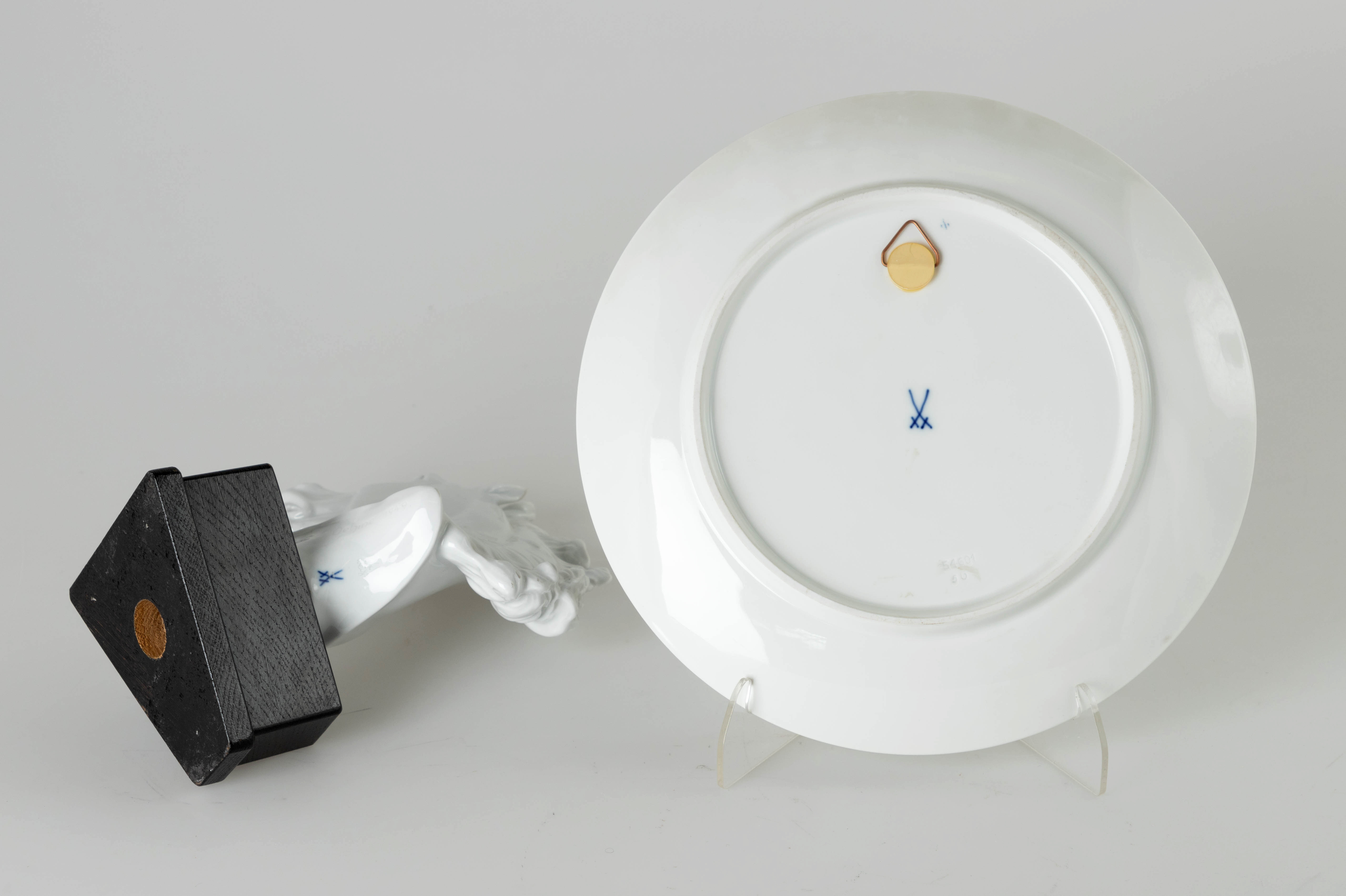 2768409. MEISSEN. Ein Pferdekopf und ein Wandteller, 20. Jh.
