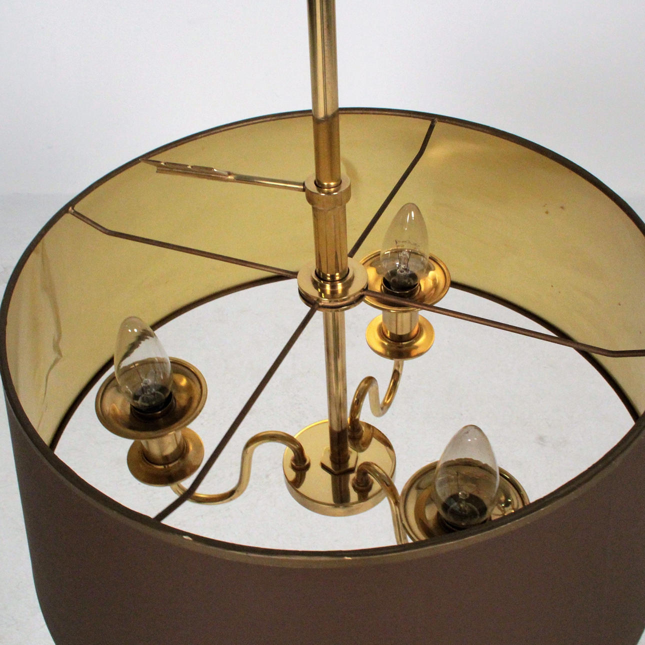 Altersgemäßer Gebrauchszustand, Patina, Kratzer, Formabweichungen des Lampenschirms.
