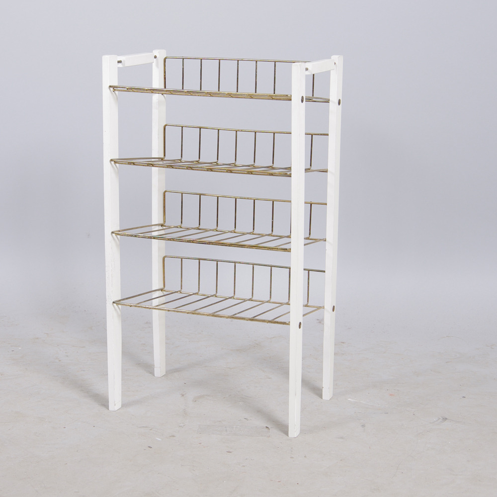 277080. NOTES, Messing / weiß lackiertes Holz, erste Hälfte 20. Jahrhundert.