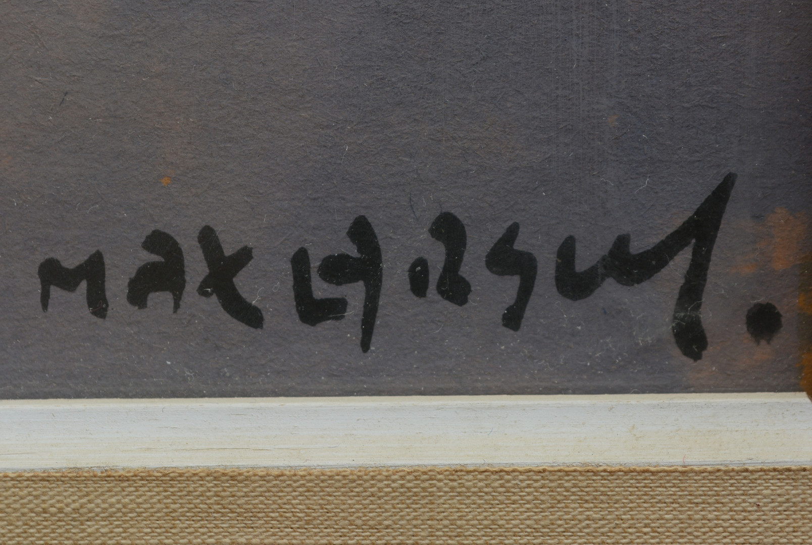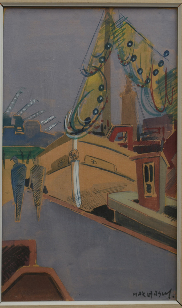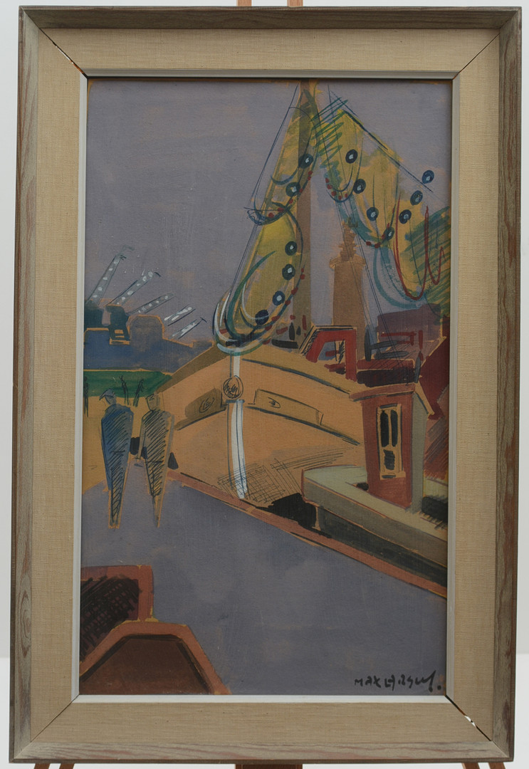 2771475. MAX GREGER LARSON. Fischerboot im Hafen. Aquarell.