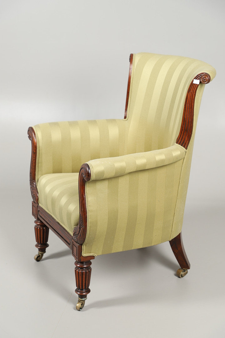 2771556. EIN WILLIAM IV MAHAGONI SCROLL SESSEL.