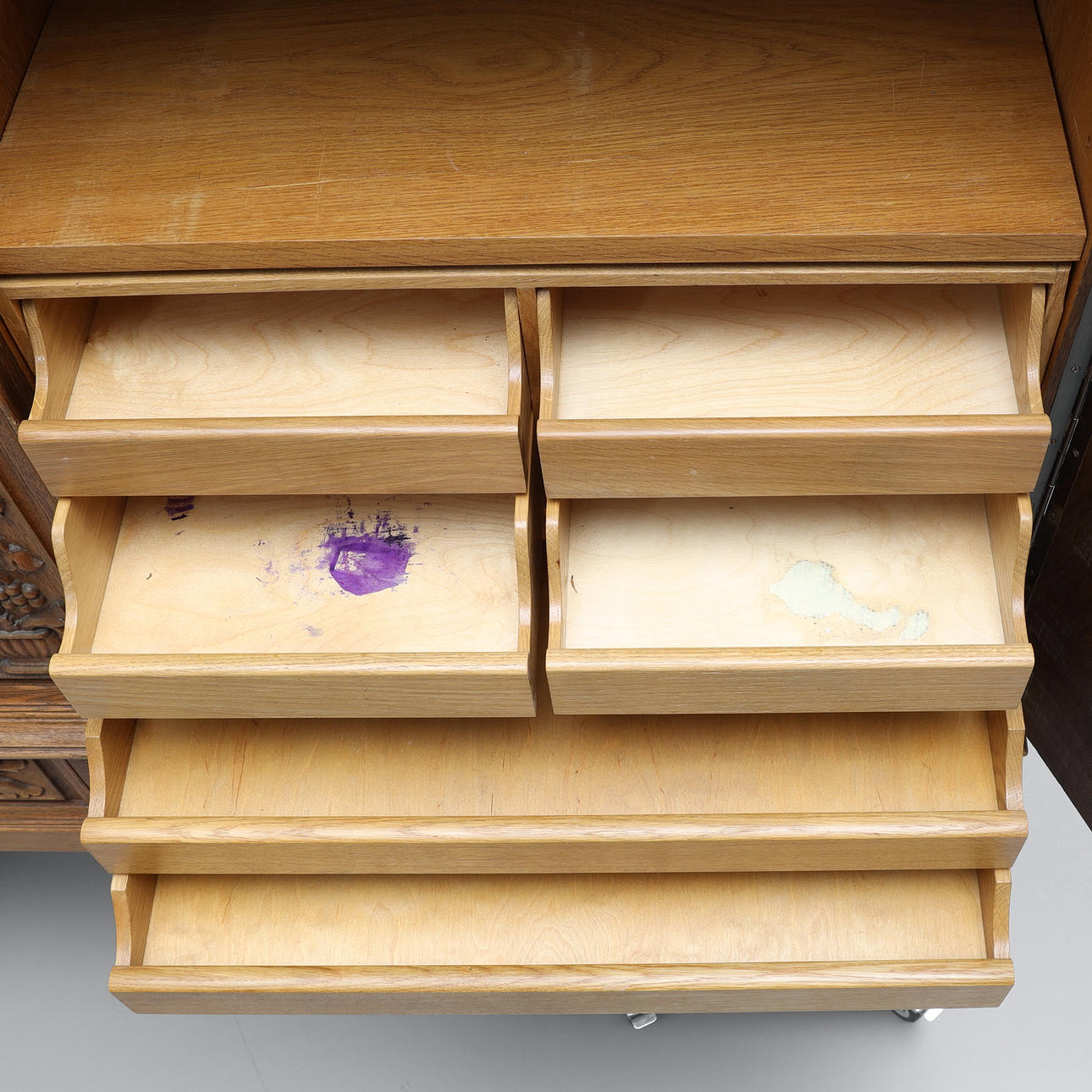 Verschleiß, ein Schlüsselanhänger fehlt, ein Schlüsselanhänger lose, Flecken in den Schubladen, Reparatur der rechten Tür um und über dem Schlüsselloch.