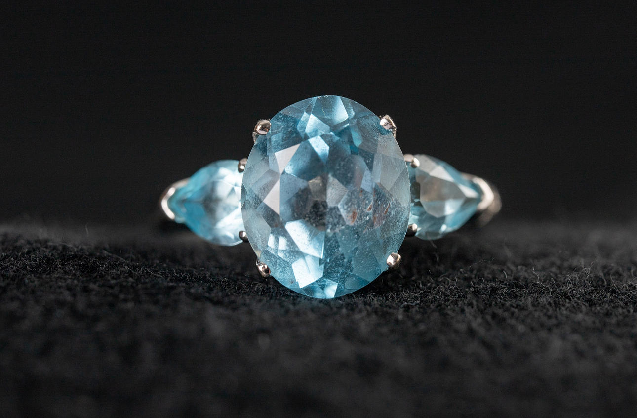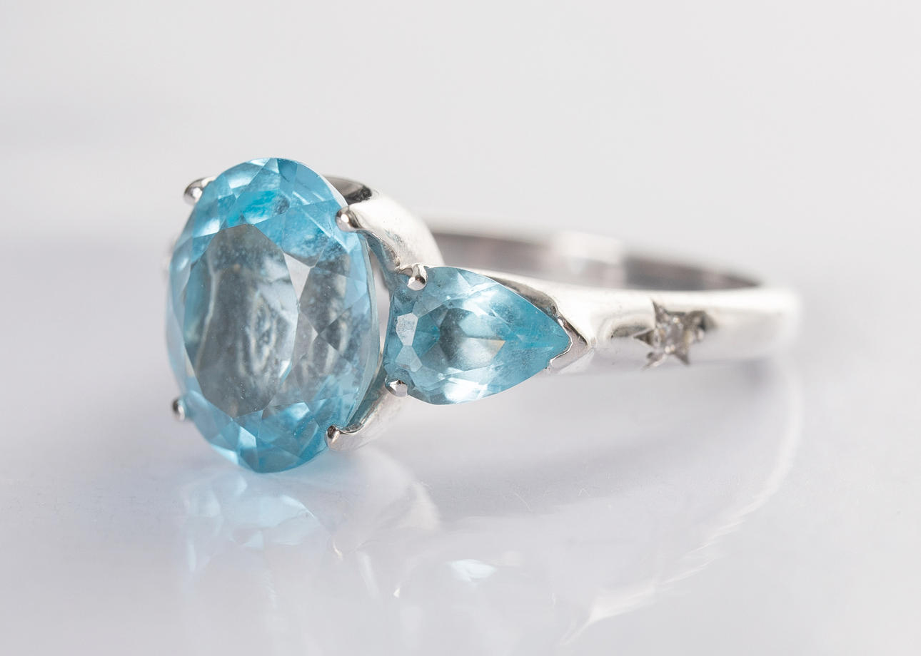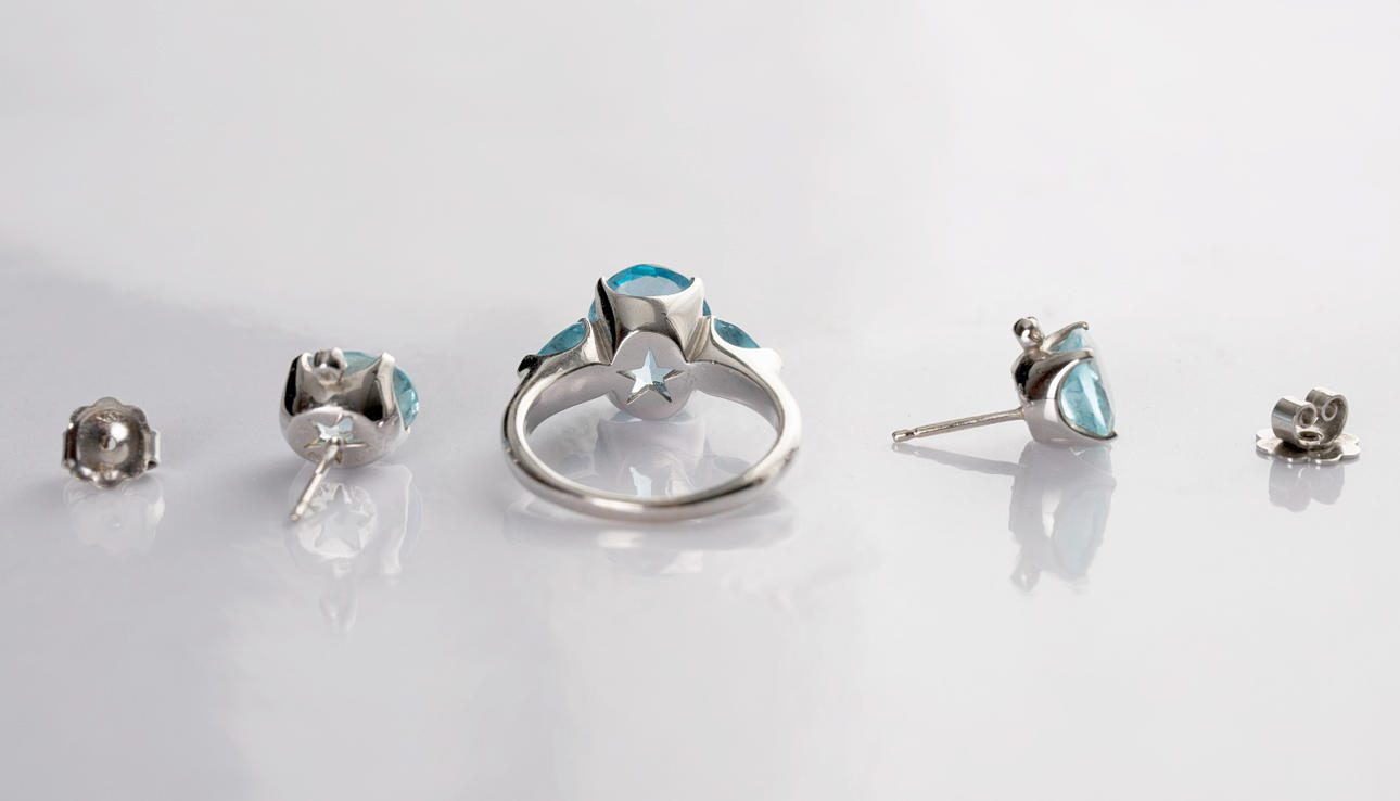 Schmuckset von 'H.Stern' gefertigt aus 750er Gold, bestehend aus 1 Ring besetzt mit 3 Topasen von insgesamt ca. 5.75 ct und 1 Paar Ohrringe besetzt mit 2 Topasen von insgesamt ca. 6.40 ct. Ring und Ohrringe jeweils mit einem Diamant besetzt. Ringgröße ca. 57. Gesamtgewicht ca. 11,5 Gramm.