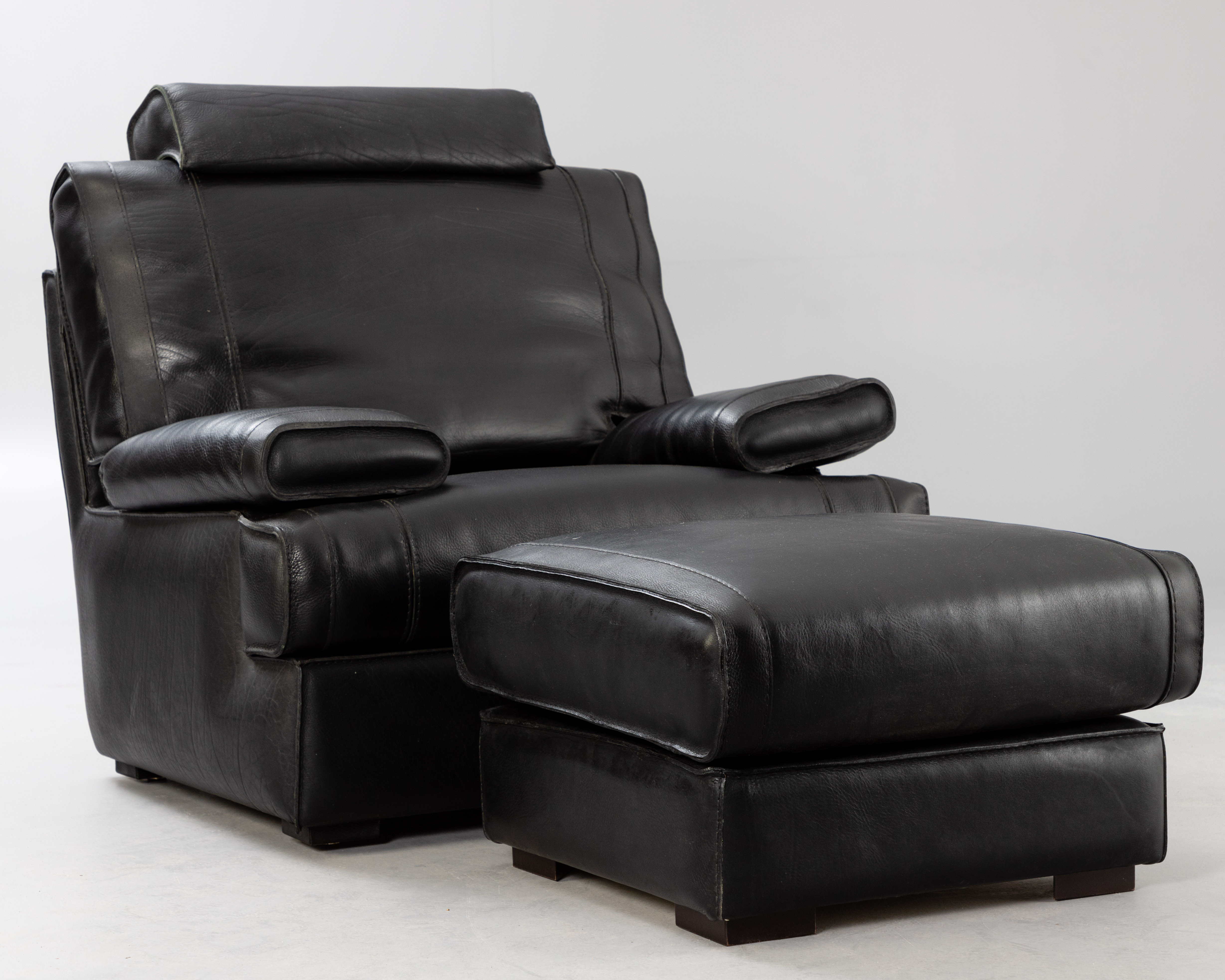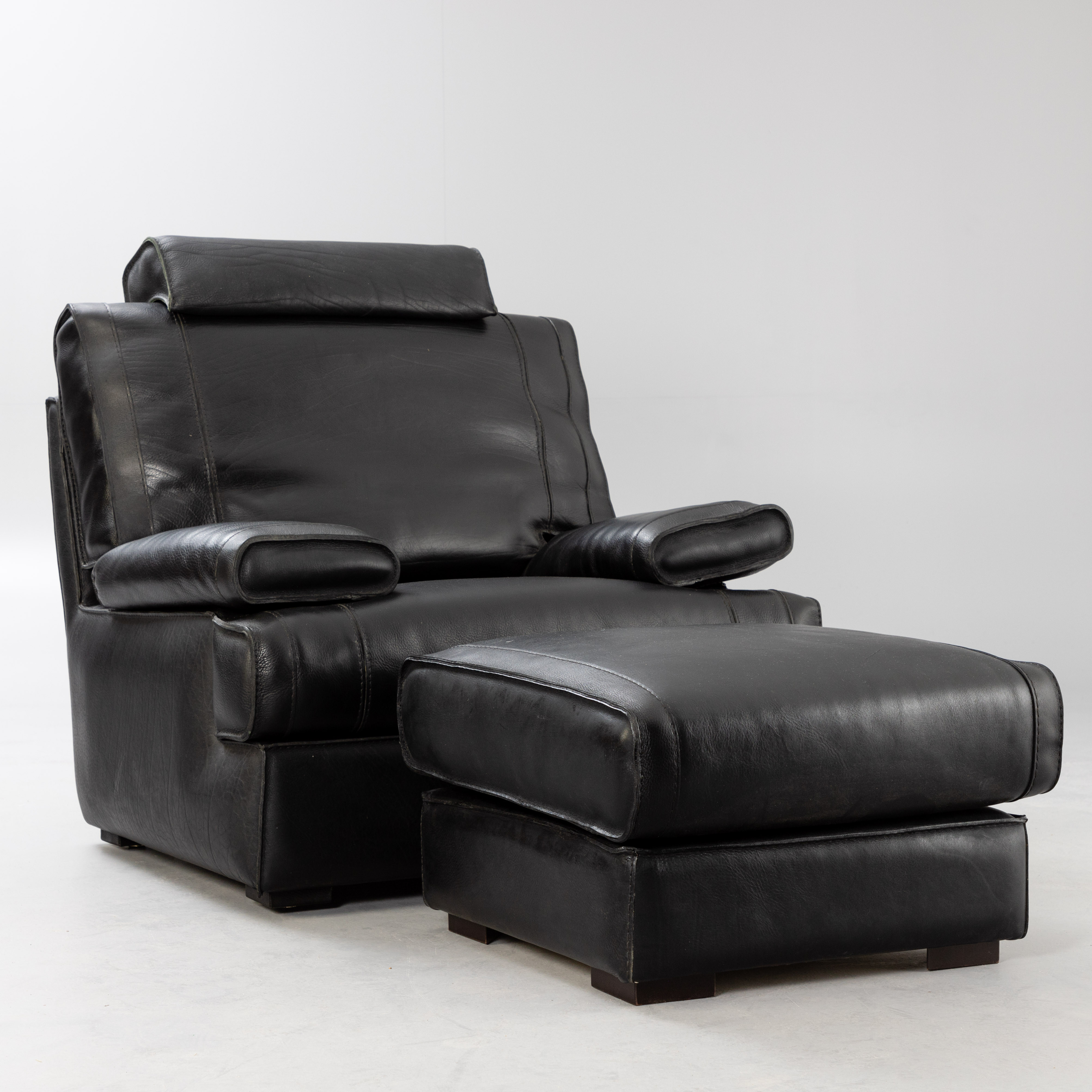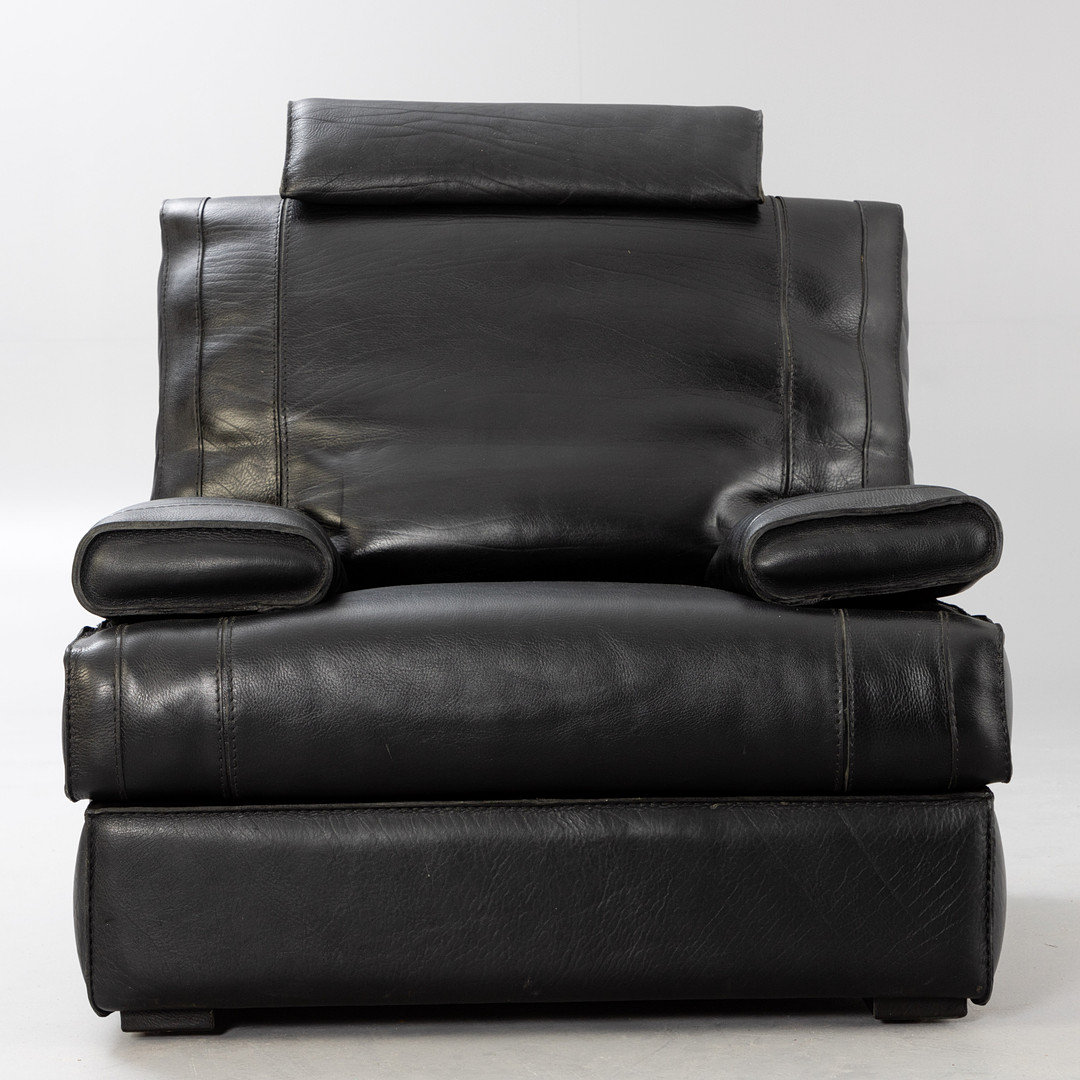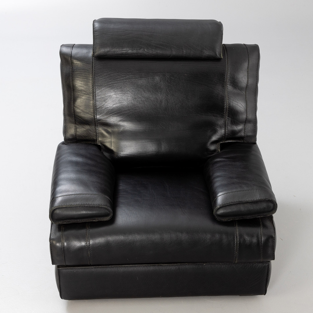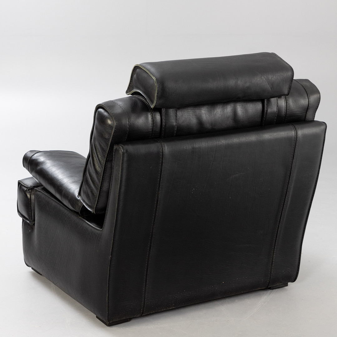 2780206. Sofa Art. Leder Sessel mit Hocker, schwarz.