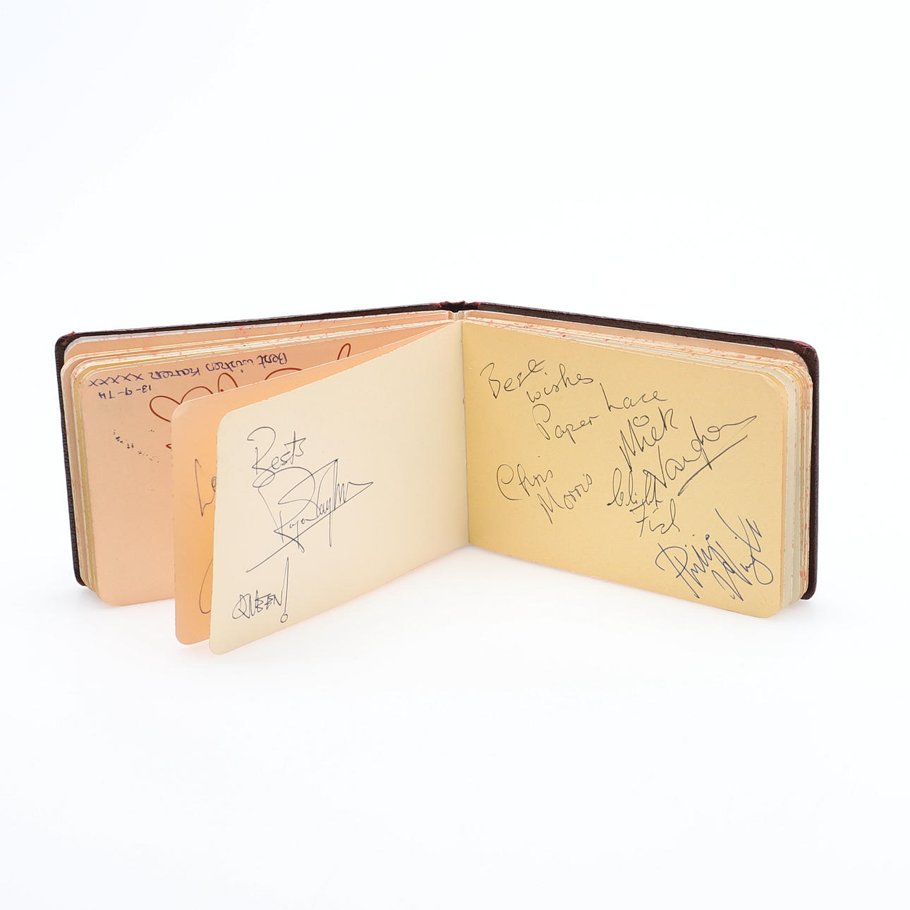 AUTOGRAMM. AUTOGRAMMBUCH MIT 75-80 AUTOGRAMMEN, EINSCHLIESSLICH ABBA, KEITH MOON, CARL PERKINS.