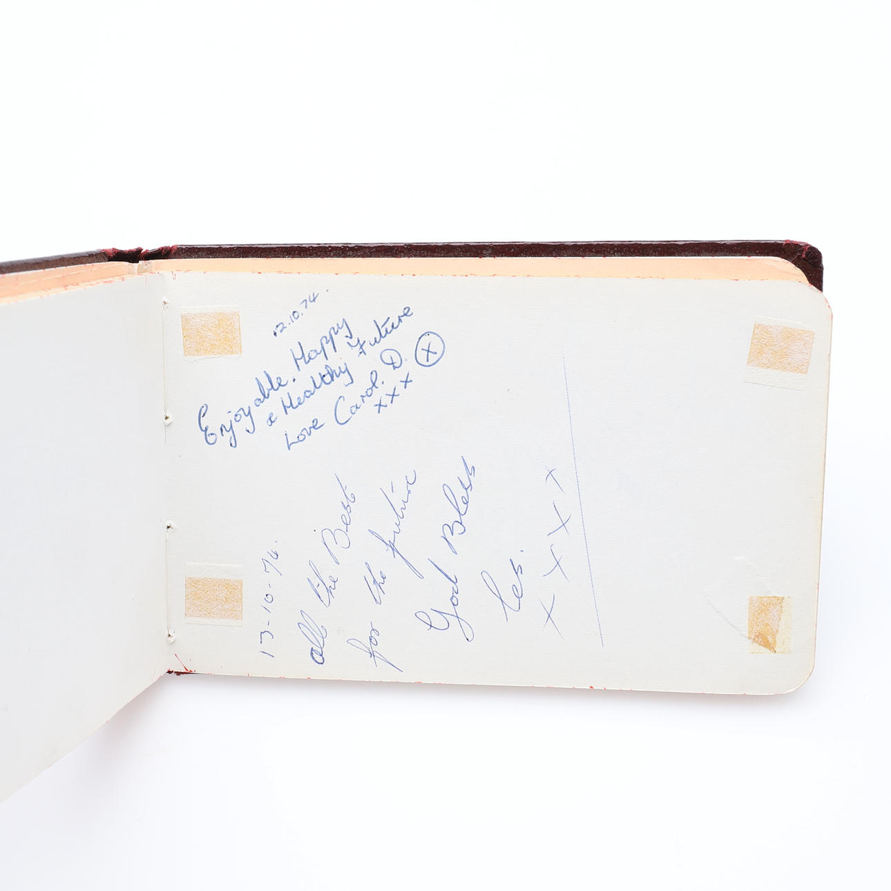 2785401. AUTOGRAMM. AUTOGRAMMBUCH MIT 75-80 AUTOGRAMMEN, EINSCHLIESSLICH ABBA, KEITH MOON, CARL PERKINS.
