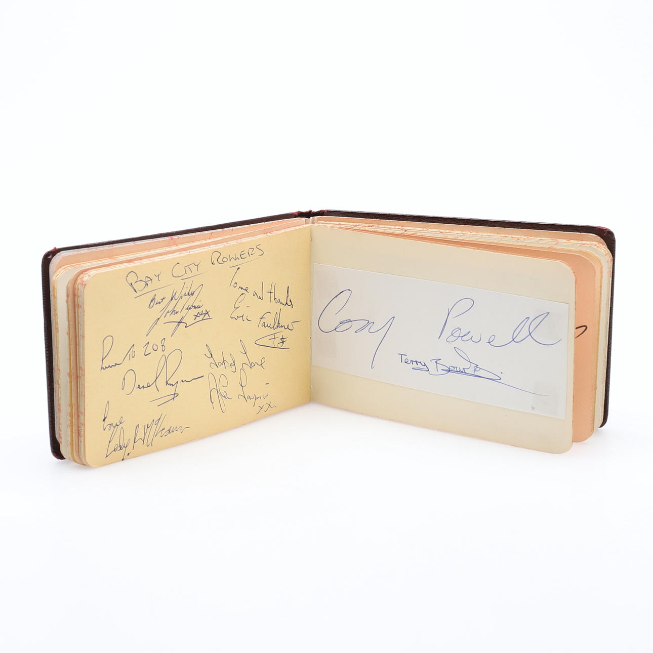 Autogramm. Autogrammblock mit 75-80 Autogrammen, darunter ABBA, Keith Moon, Carl Perkins. Enthält auch Carl Palmer, Carl Perkins, Chris Spedding, Brenda Lee, Pointer-Schwestern, Bobby Vee, Bay City Rollers, Cozy Powell, Helen Eddy, Alice Cooper, Ringo Starr , Keith Moon sowie etwa 50 weitere Namen, die weiterer Ermittlungen bedürfen.