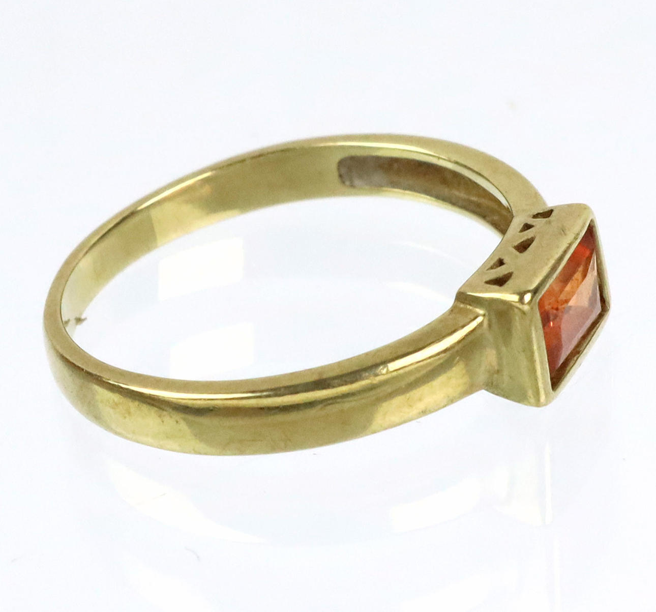 Citrin Ring punziert Gelbgold 333 (14 Karat), ca. 1,9 Gramm, Ringkopf mit rechteckig facettiertem Citrin von ca. 6 x 4mm in glatter Goldzarge gefasst, RG 55, InnenØ 17,5 mm.