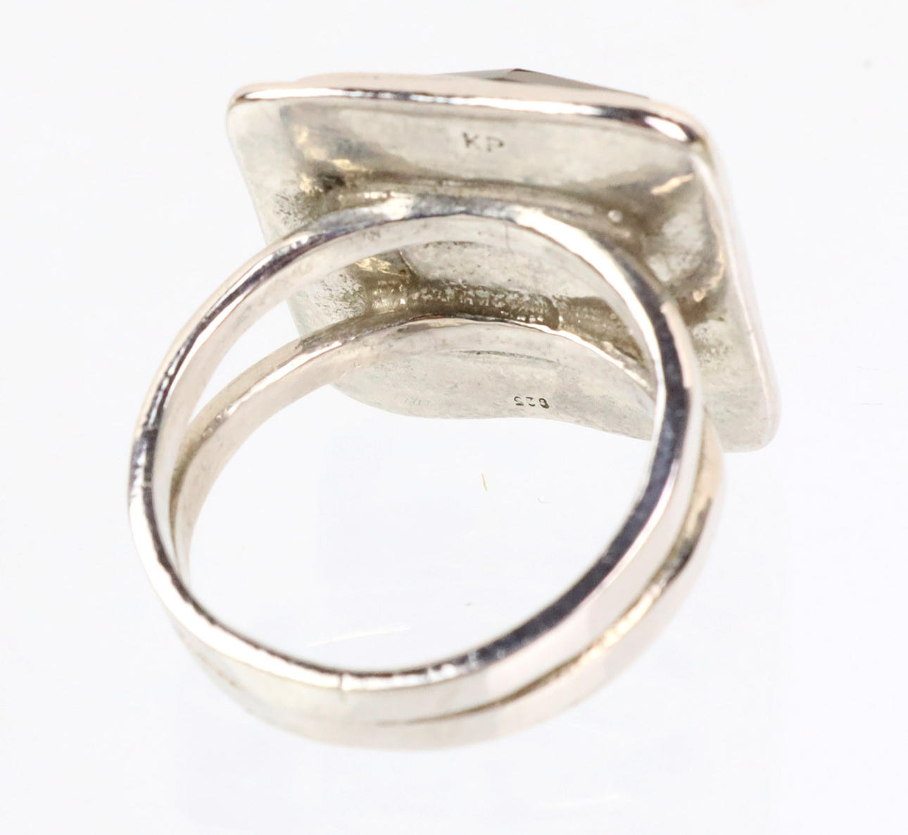 Onyx Ring punziert Silber 925, ca. 9,5 Gramm, Ringkopf mit quadratischfacettiertem Onyx von ca. 14 x 14 mm in Doppelrahmung besetzt, RG 57, InnenØ 18,1 mm.