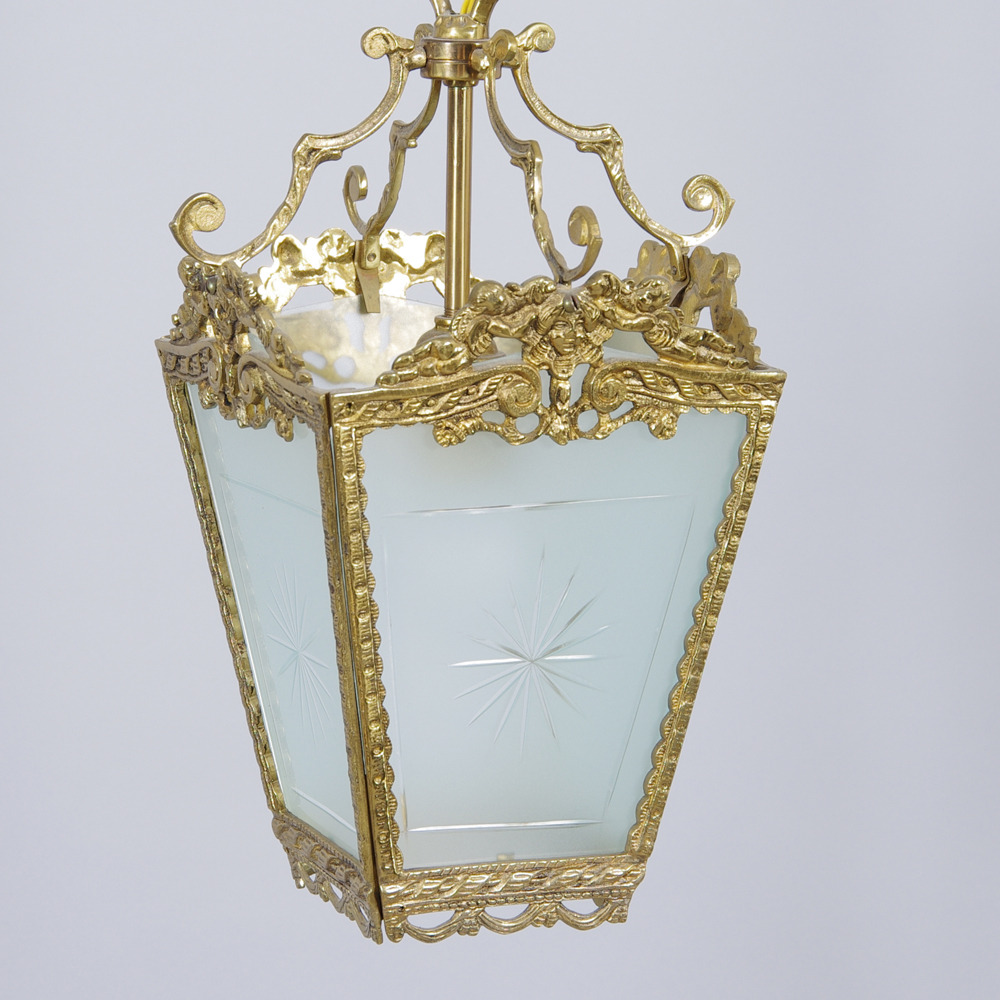 278997. DECKENLEUCHTE, Messing / Glas.