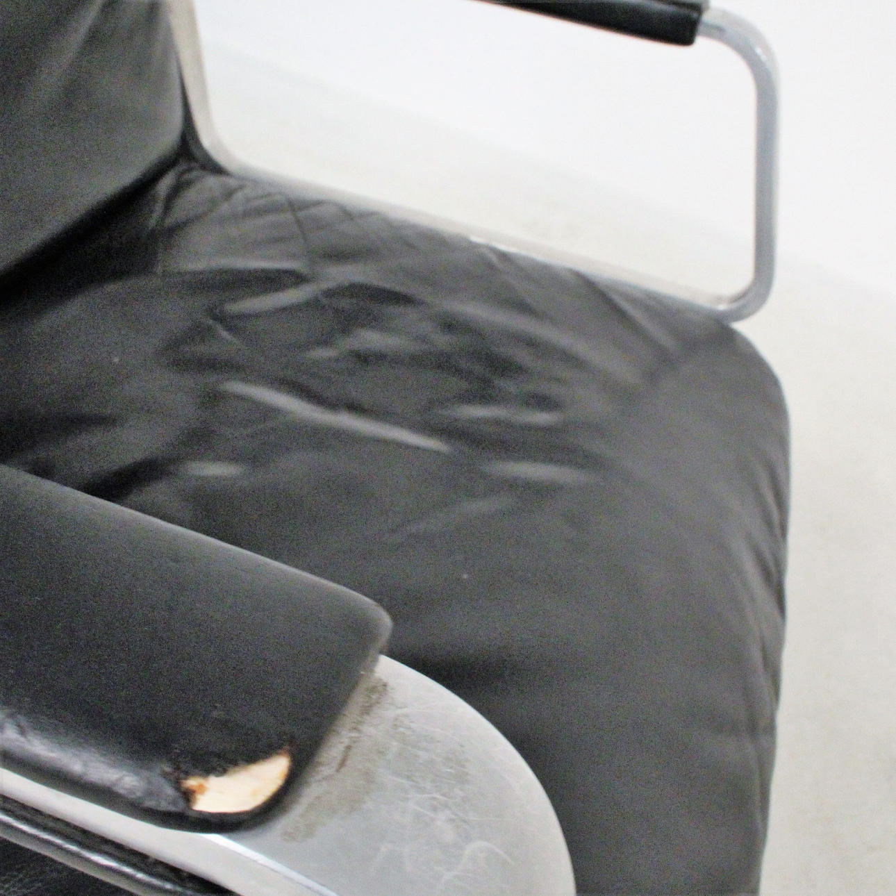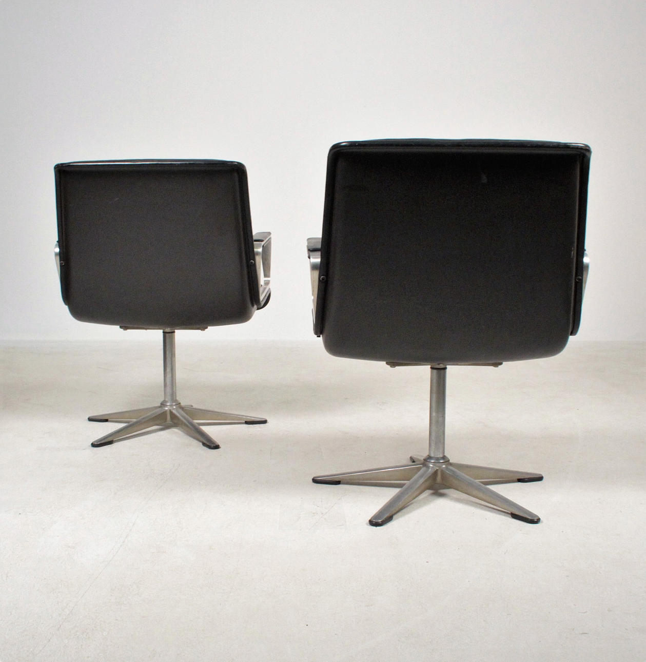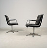Dieser Bürostuhl wurde 1968 von Delta-Design entworfen, zu dem Michael Conrad, Henner Werner, Detlef Unger und Dieter Raffler gehörten. Delta-Design entwickelte für Wilkhahn die Serie 2000, eine beliebte Sitzreihe für anspruchsvolle Führungskräfte. Der drehbare fünfarmige Fuß ist aus gebürstetem und poliertem Aluminium gefertigt.