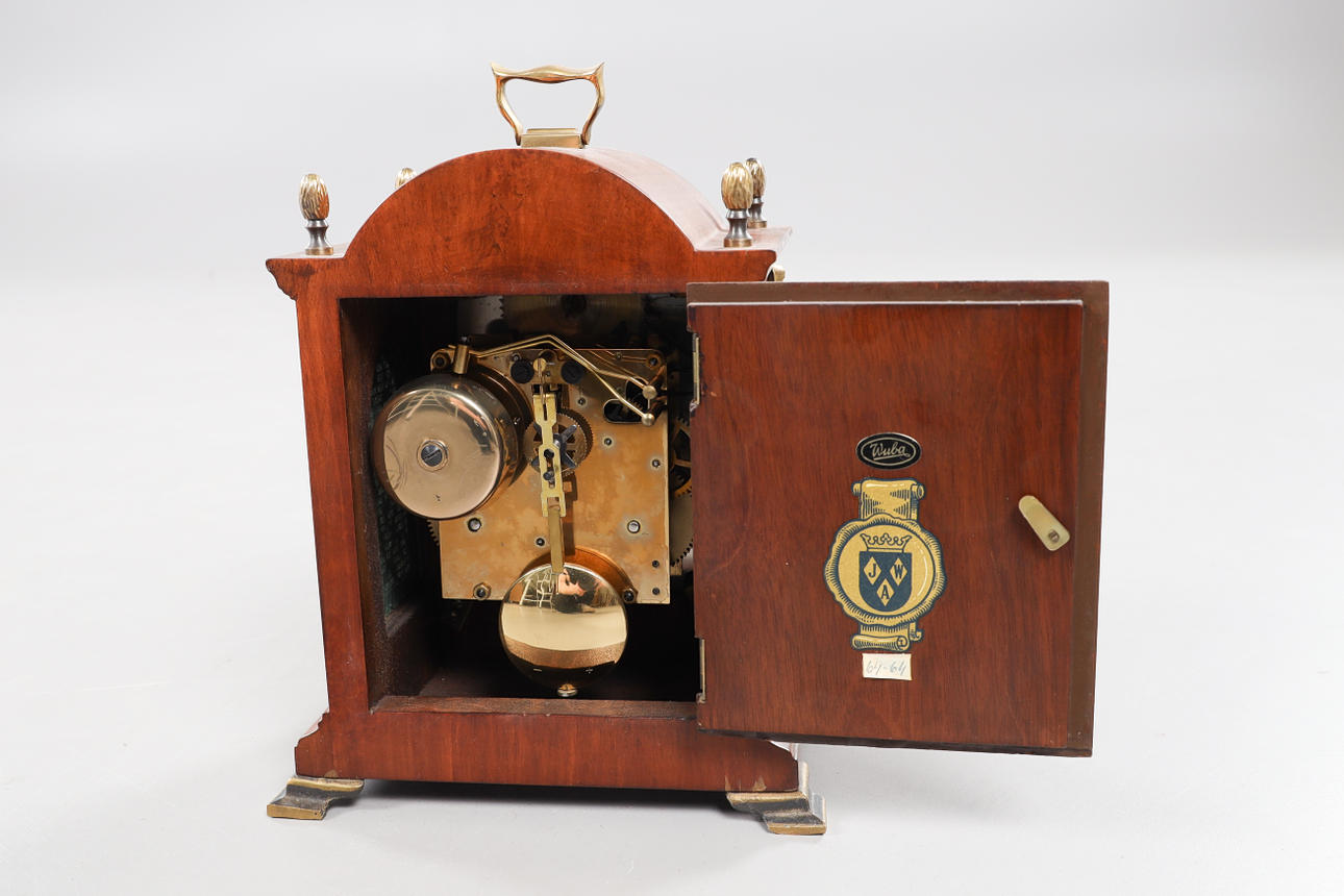 Höhe 25 cm, Holzgehäuse mit Details aus gelbem Metall.