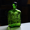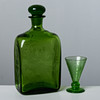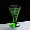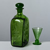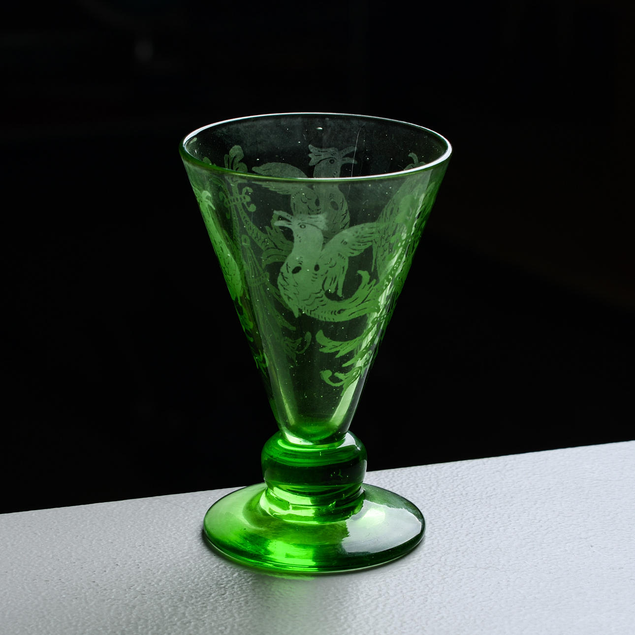 In grünem Glas mit geätztem Dekor, das Vögel und Blumen darstellt.