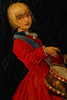 Kinder in Kostümen, angelehnt an die Mode des Rokoko. Das Mädchen als Trommlerin, der Junge als Reiter. Petersen war nach dem Zweiten Weltkrieg u.a. als Illustrator der Mecki-Bücher tätig.