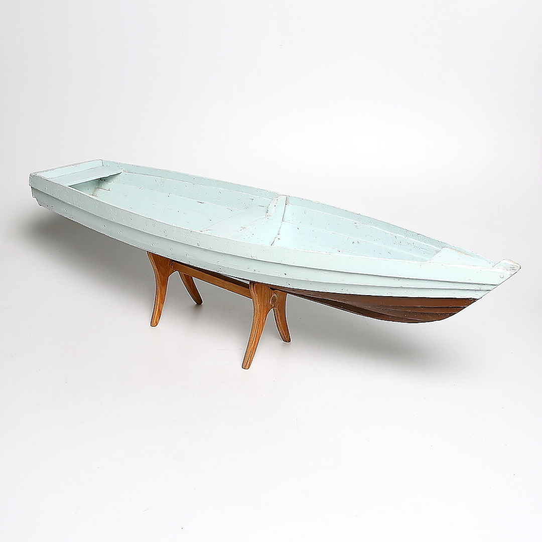 280265. BOOTSMODELL mit STAND, Holz, Eiche. Mitte des 20. Jahrhunderts.