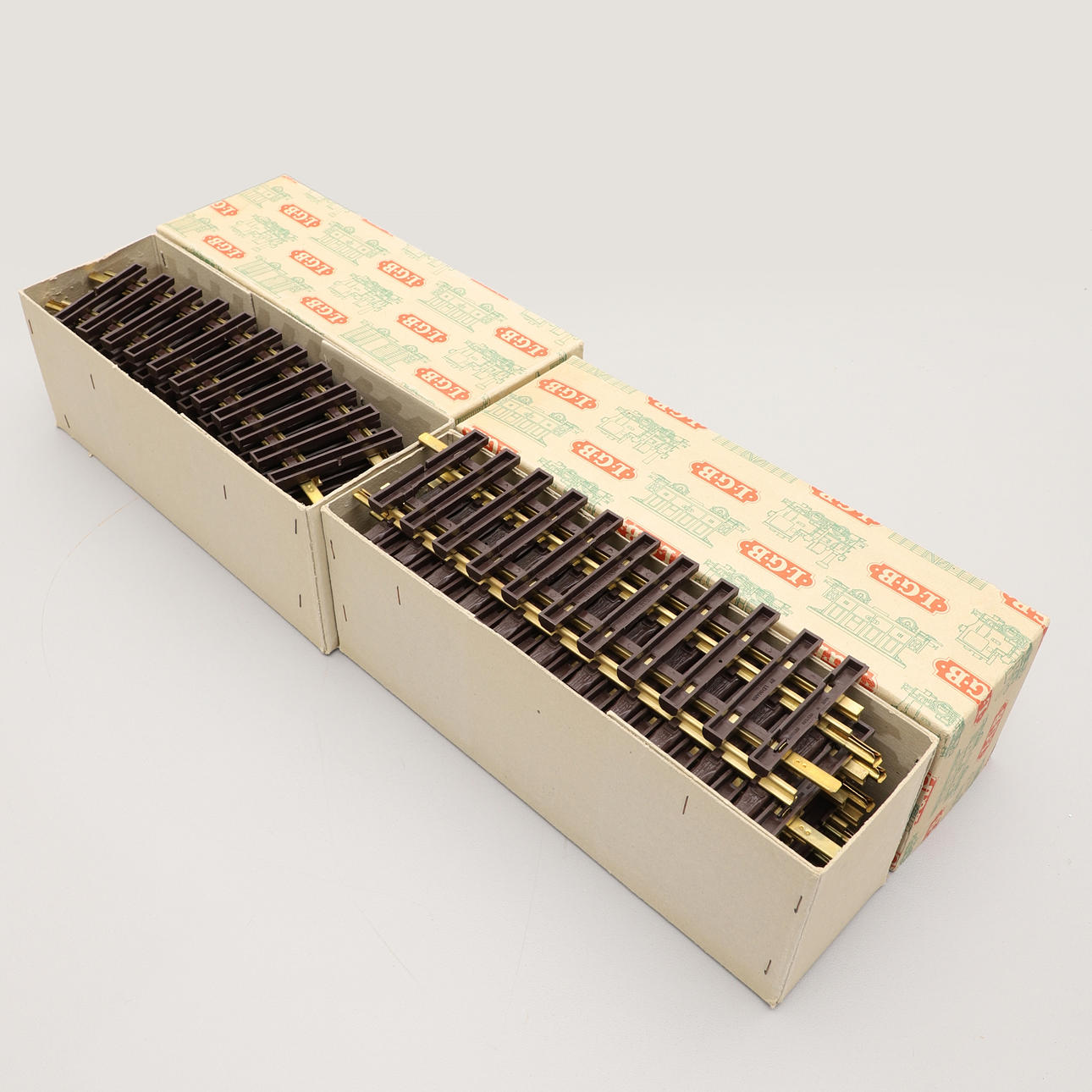 2 Gänge, sowie 3 Kästen mit Schienen. Sowie vier Kartons mit Trolleys.