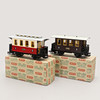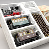 In Neuzustand. Zugset mit Dampflokomotive und Waggons und Schienen. Und Figuren.