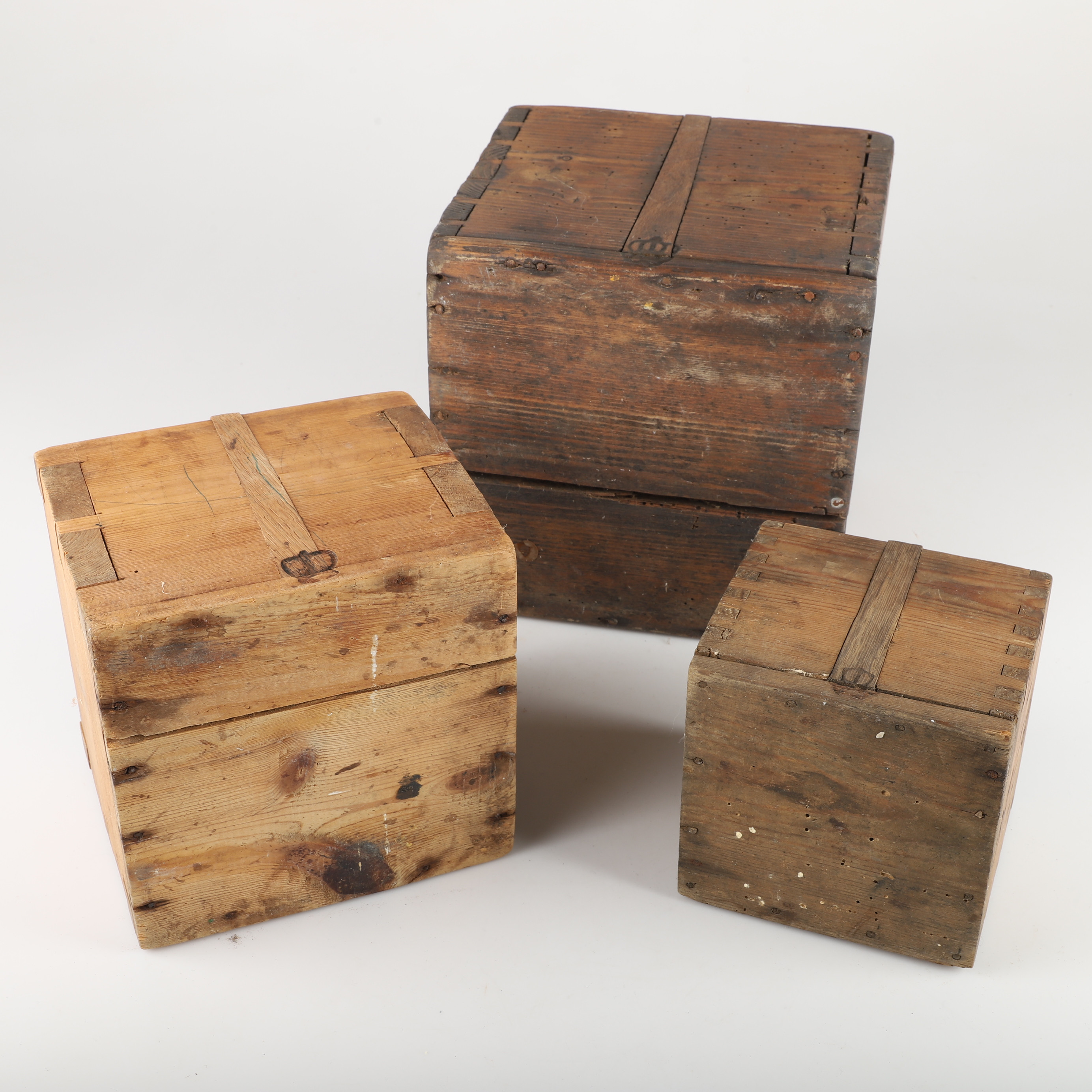 2806238. MESSSATZ, 3-teilig, Holz, gekrönt.