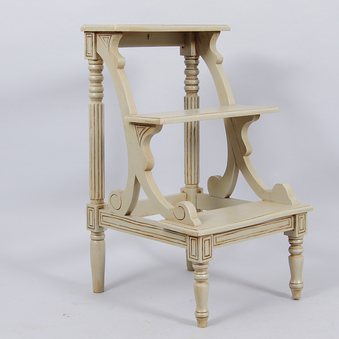 280840. BIBLIOTHEKSTREPPE, grau gestrichen, zeitgenössisch.