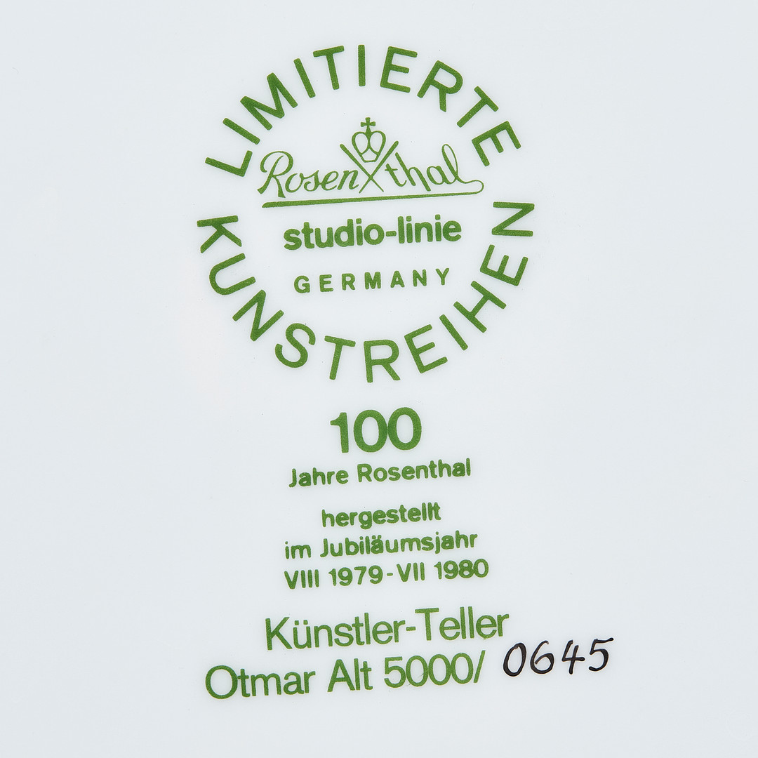 2811147. OTMAR ALT. Wandteller und Buch 'Puzzles', ca. 1980.