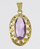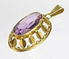 punziert Gelbgold 585 (14 Karat), ca. 4,35 Gramm, Anhänger in ovaler Form mit umlaufendem Blattfreis durchbrochen gearbeitet, mit einem Amethyst von ca. 17 x 8 mm im Ovalschliff usgefasst, ca. 29 x 17 mm, Länge mit Trageöse ca. 37 mm.
