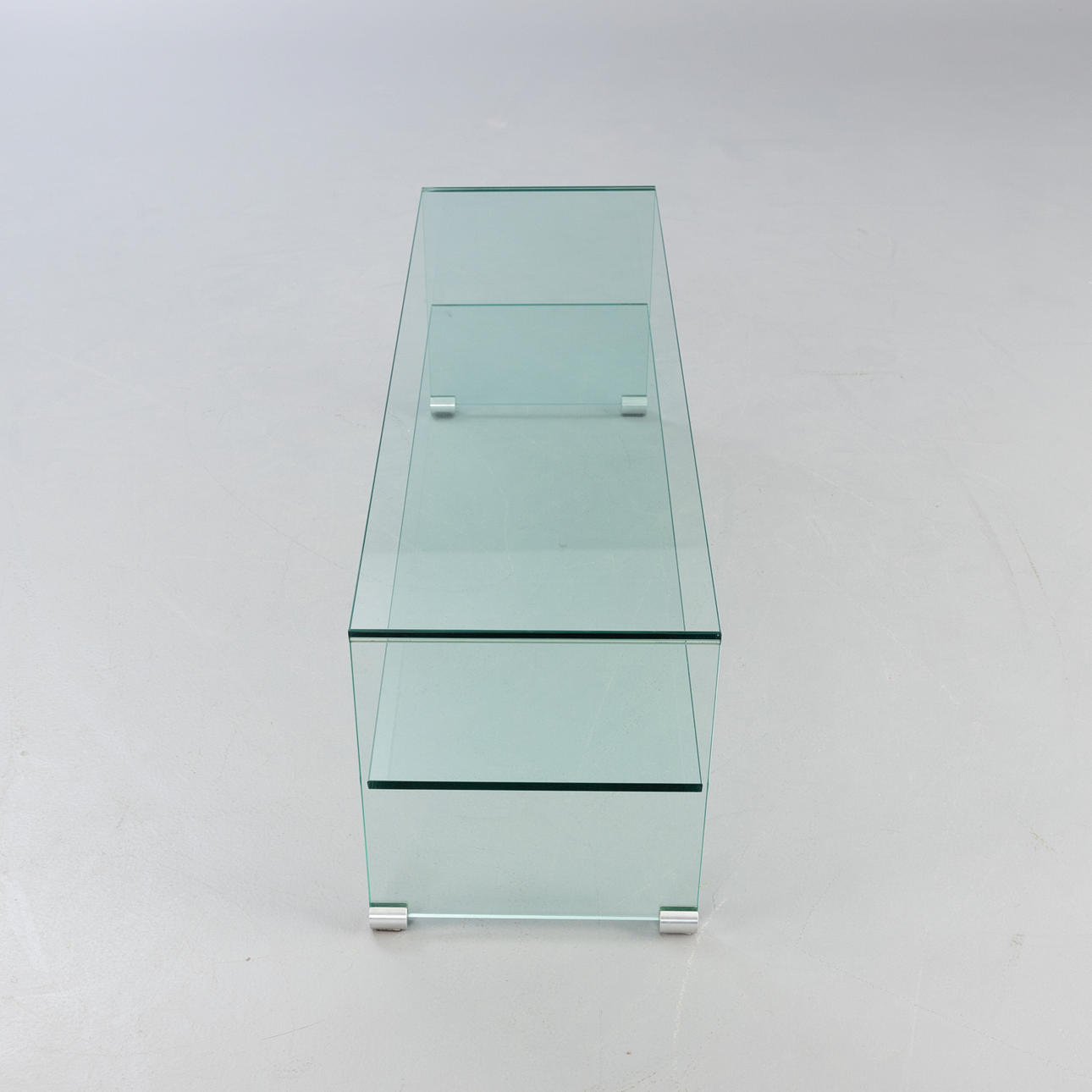 Glas Regal / Phonotisch aus 10 mm dicken Glas. Rechteckige Konstruktion mit einer Ablagefläche.