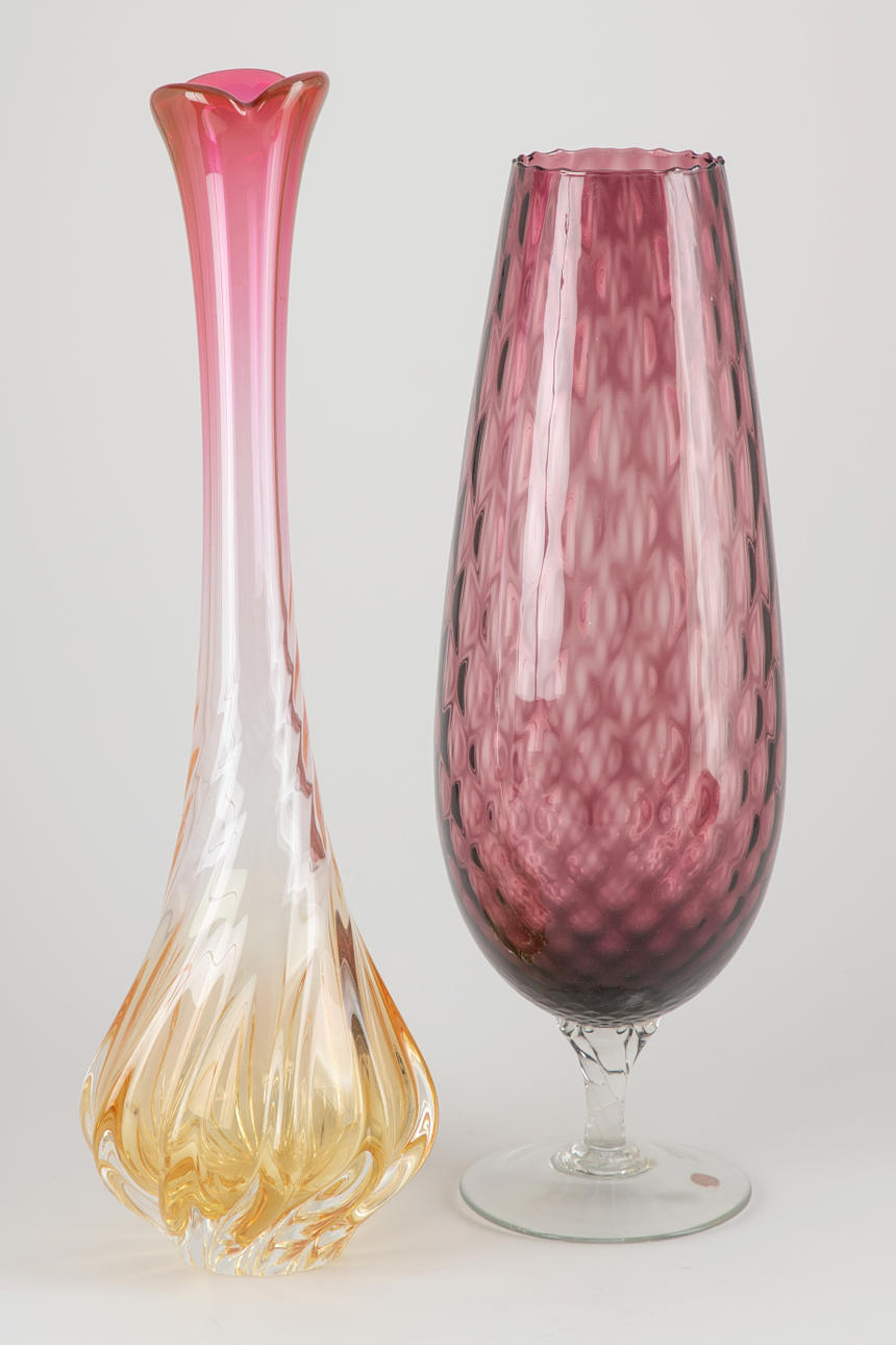 Große pink / gelbe Vase mit schmaler Mündung, H 54 cm x Ø 16 cm