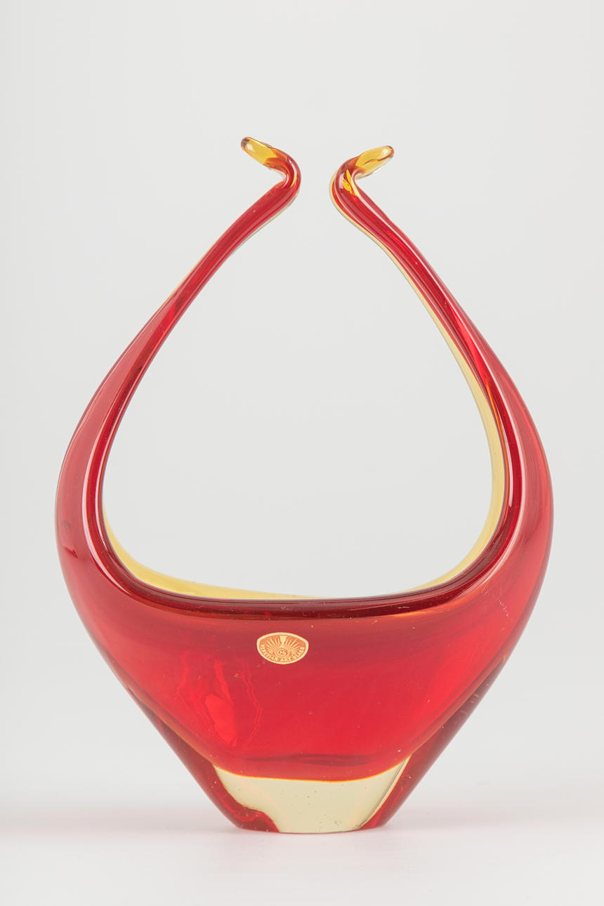 rote Schale 'Venetian Glass' mit Henkeln, H 27 cm