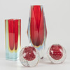 2 rote kleine Kugelvasen / Kerzenhalter mit Lufteinschlüssen