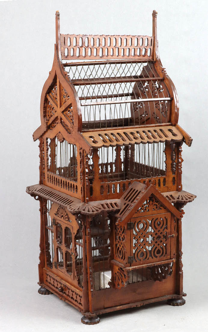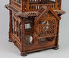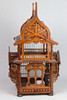 aufwendige Handarbeit, in gestuft, gegliederter Form mit beidseitigem Erker, frontseitiger Tür sowie Schub, ca. 31 x 27 cm, Höhe ca. 55 cm, Handarbeit.