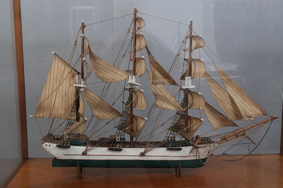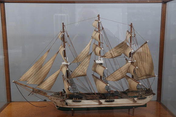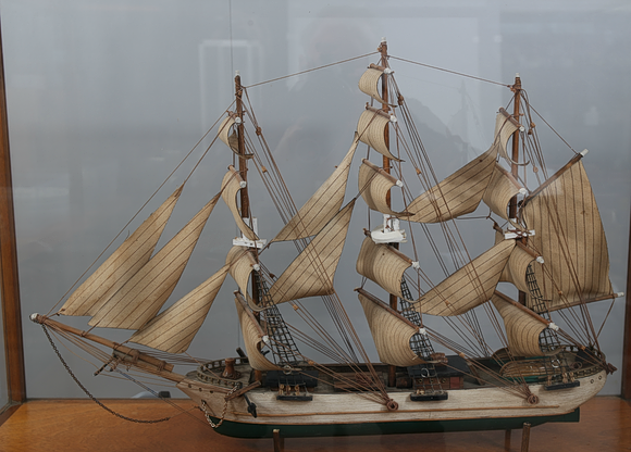 2823000. SEGELSCHIFFSMODELL IN GLASKASTEN, Mitte 20. Jahrhundert.