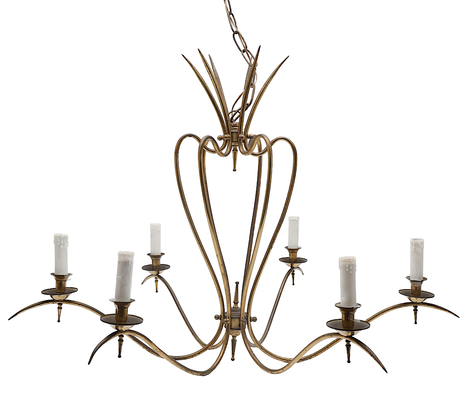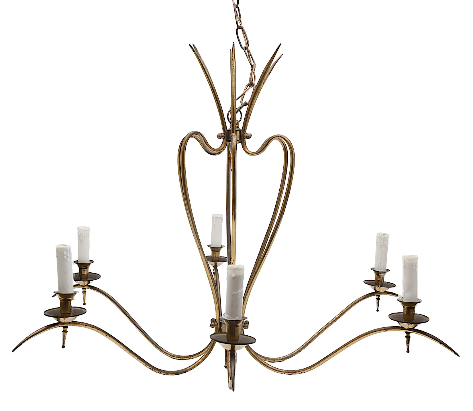 2824981. Französische Deckenlampe aus Messing, um 1960.