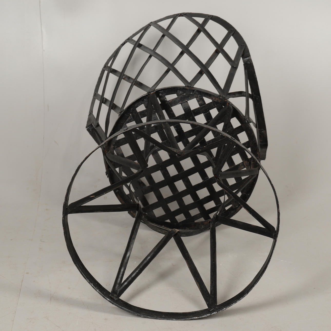 EIN GLOBAL VILLAGE STUHL AUS GEWEBTEM METALL.
