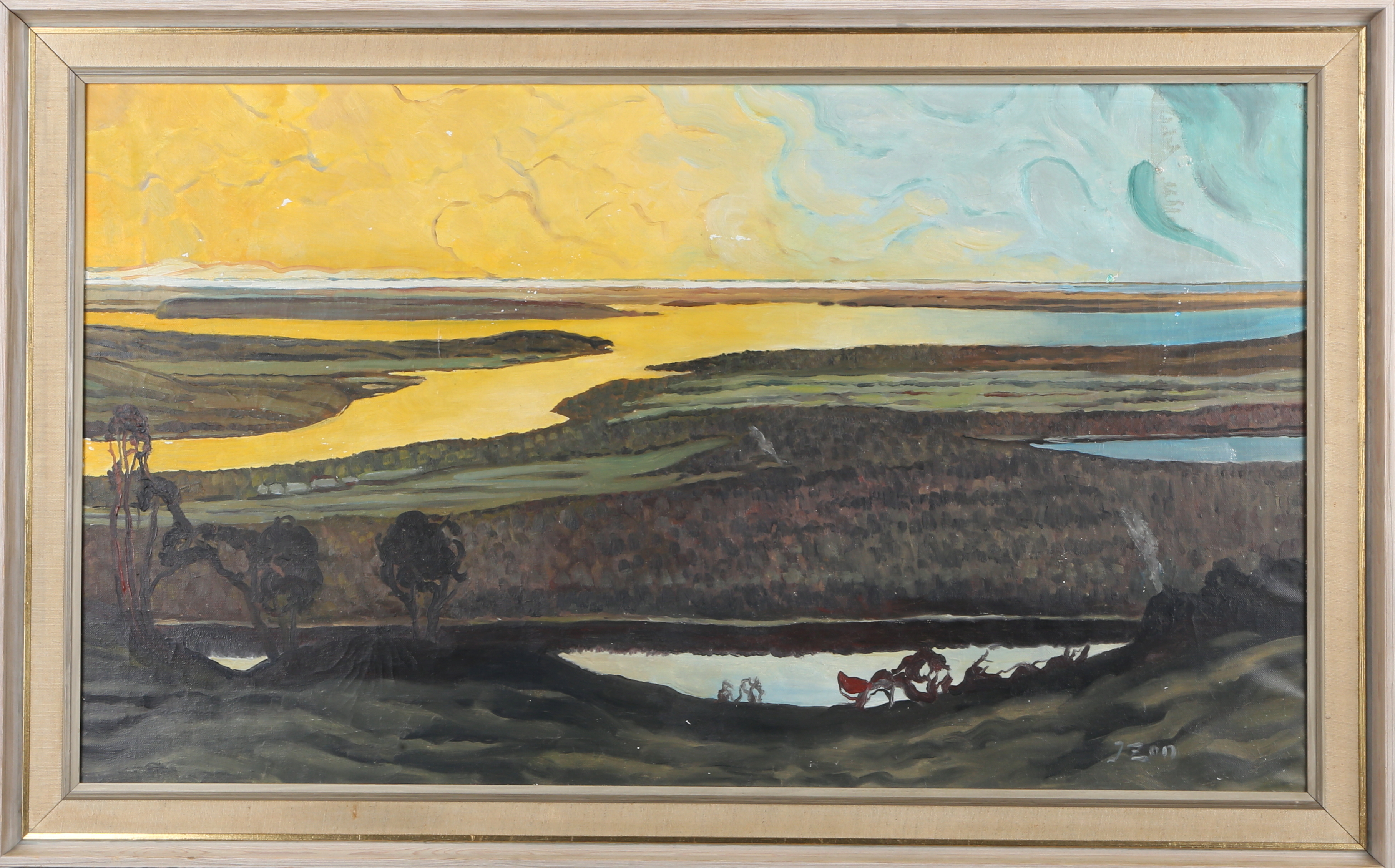 282772. Ein Menge, 4 Gemälde, 20. Jahrhundert.
