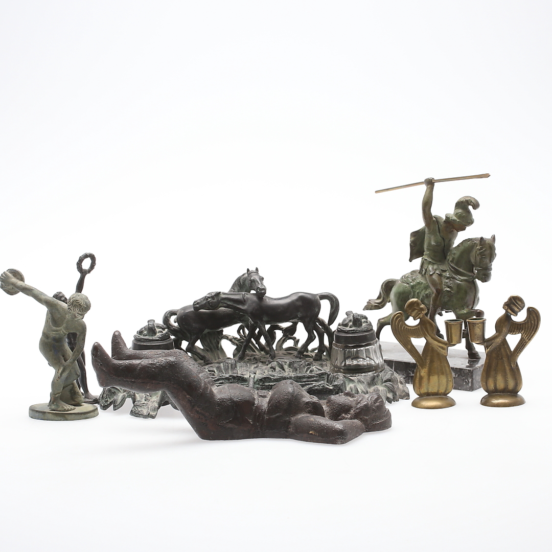 282964. Ein Menge VERSCHIEDENES, 7 Teile, Bronze, Eisen, Marmor und Messing, 18 / 1900.