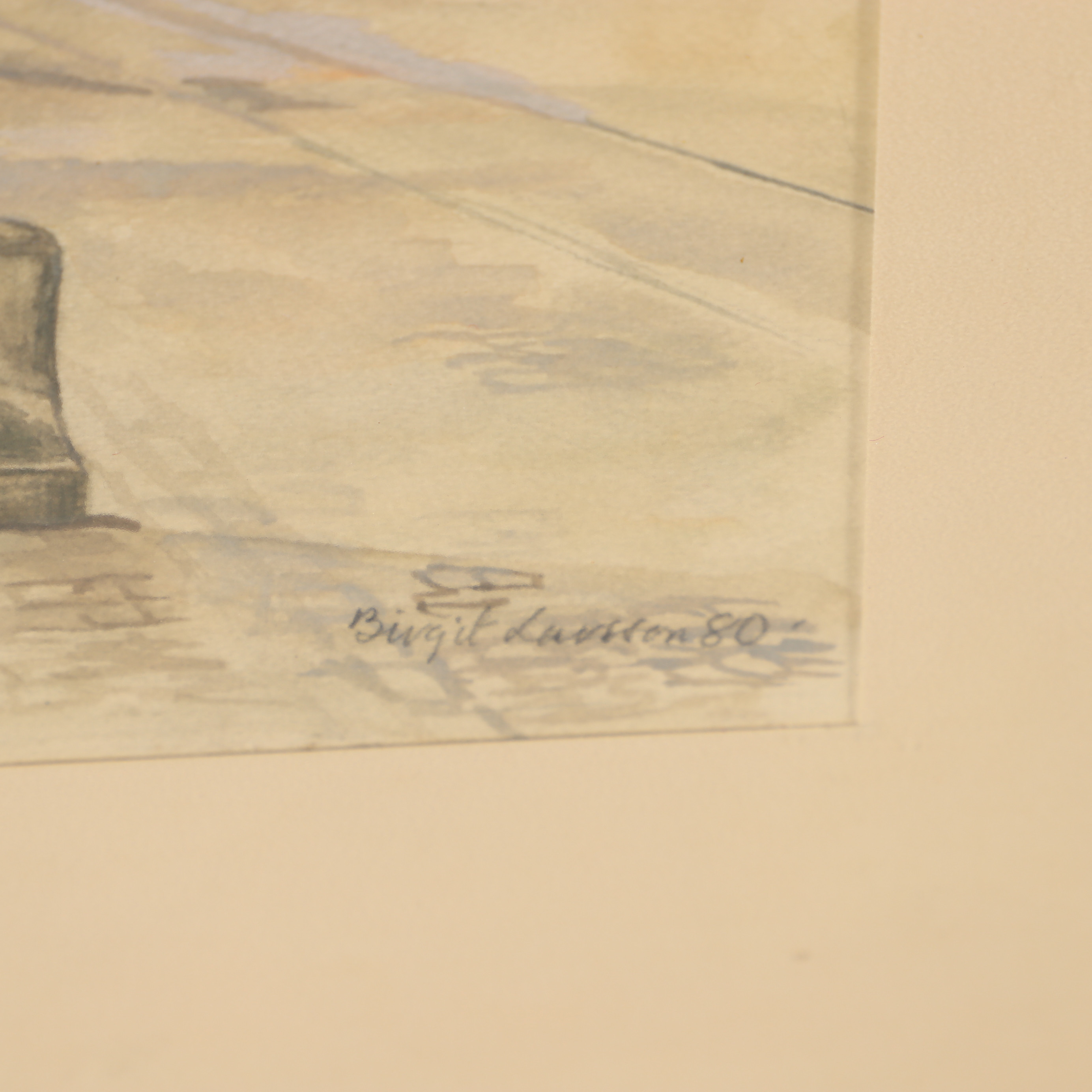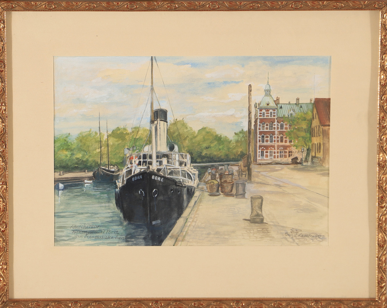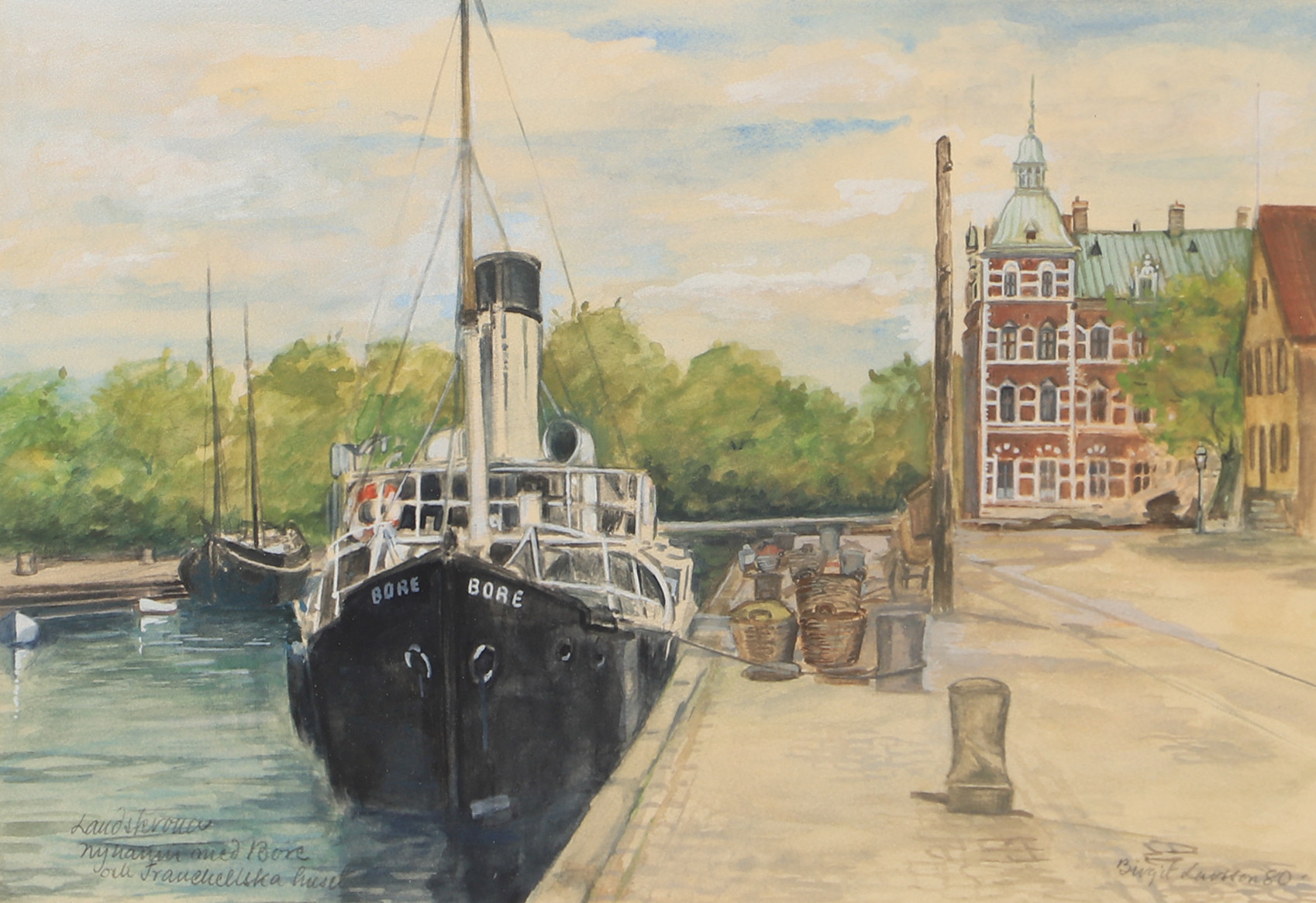 2831056. BIRGIT LARSSON. Hafen von Landskrona, Aquarell, signiert.