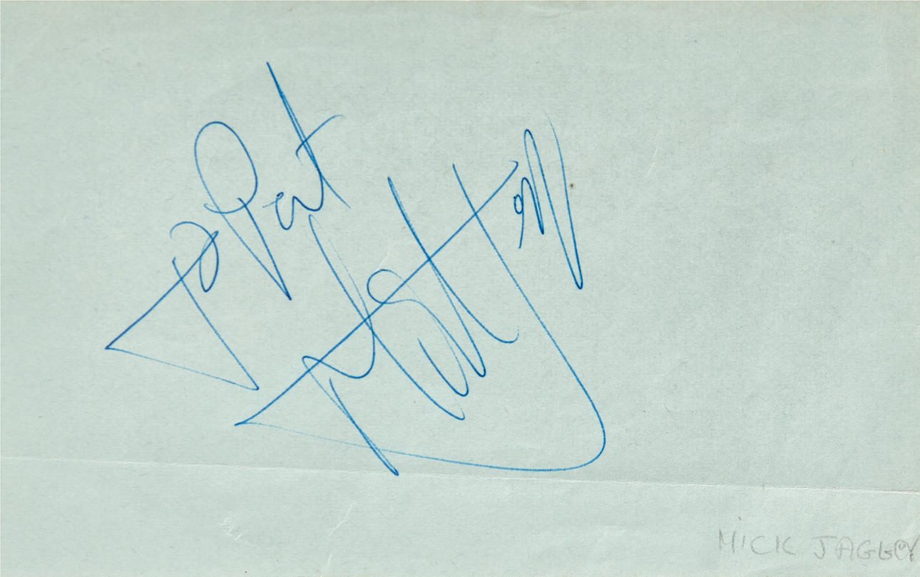 DIE ROLLING STONES, MICK JAGGER, AUTOGRAMM, 1969.