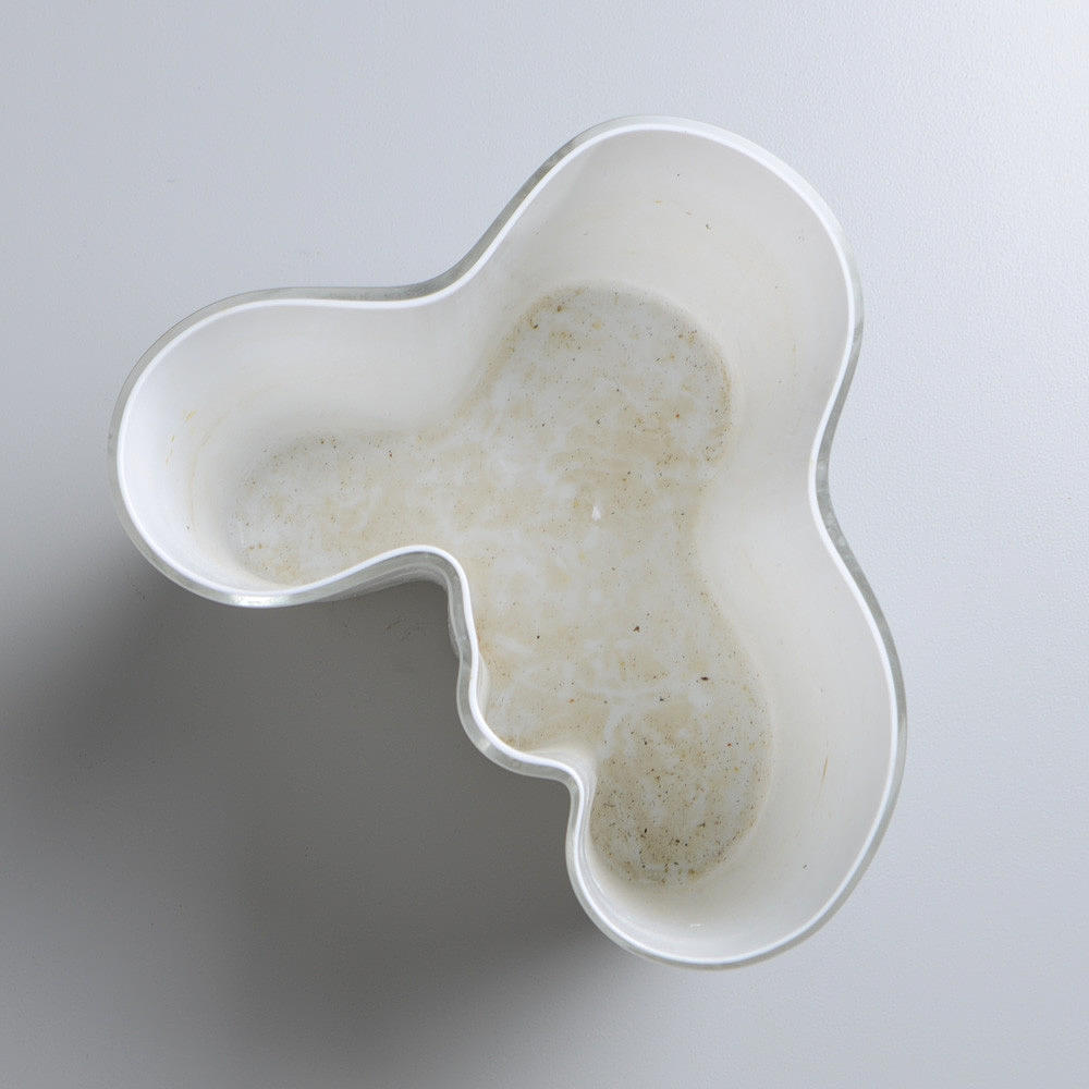 Vase aus weißem Glas. Höhe 16 cm. Breite ca. 21 cm. Stempel signiert.