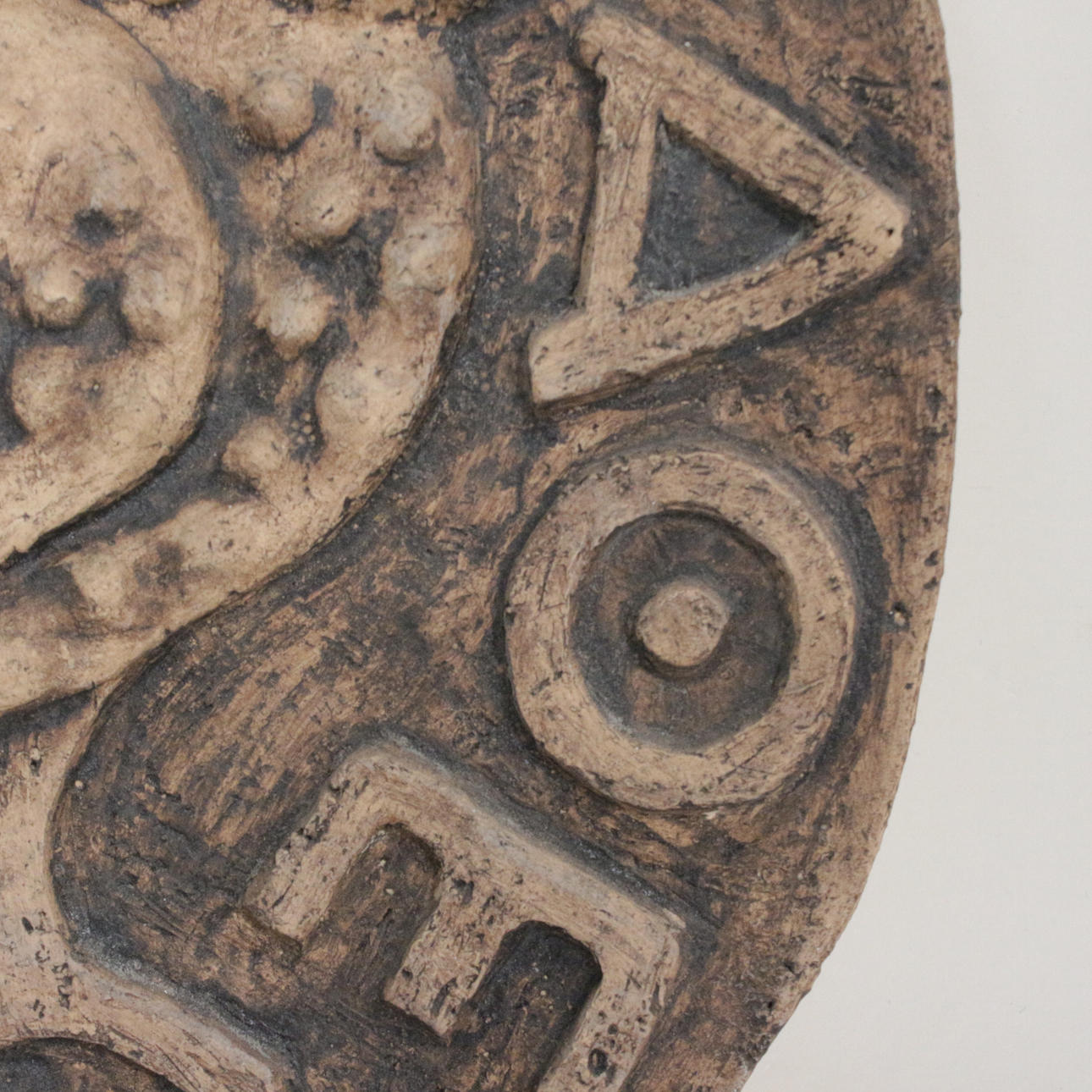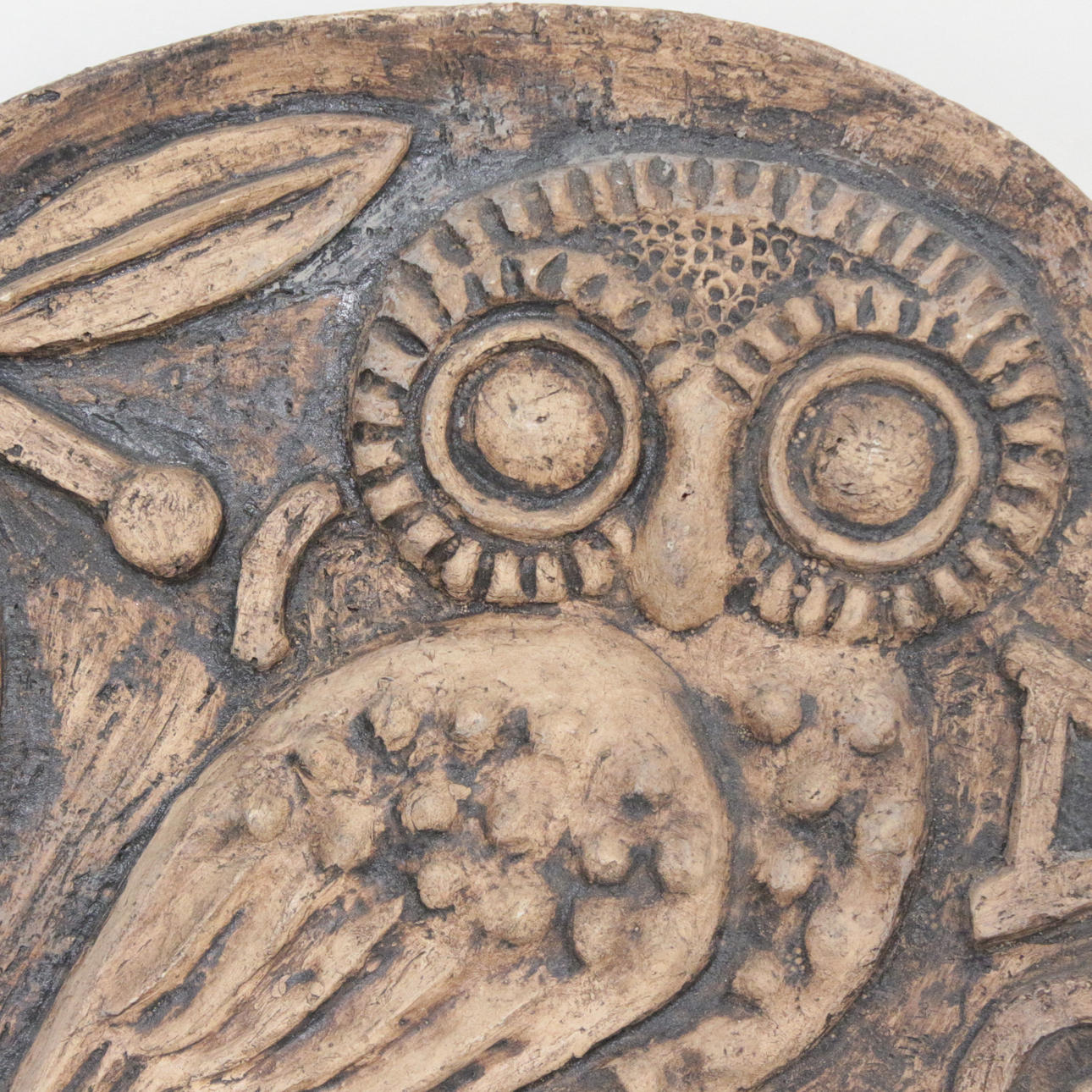 Hedwig Wagner, 'Eule der Minerva', Wandrelief / Wandkeramik, unten rechts monogrammiert, Maße ca.: 32,5 x 31,5 x 3 cm.
