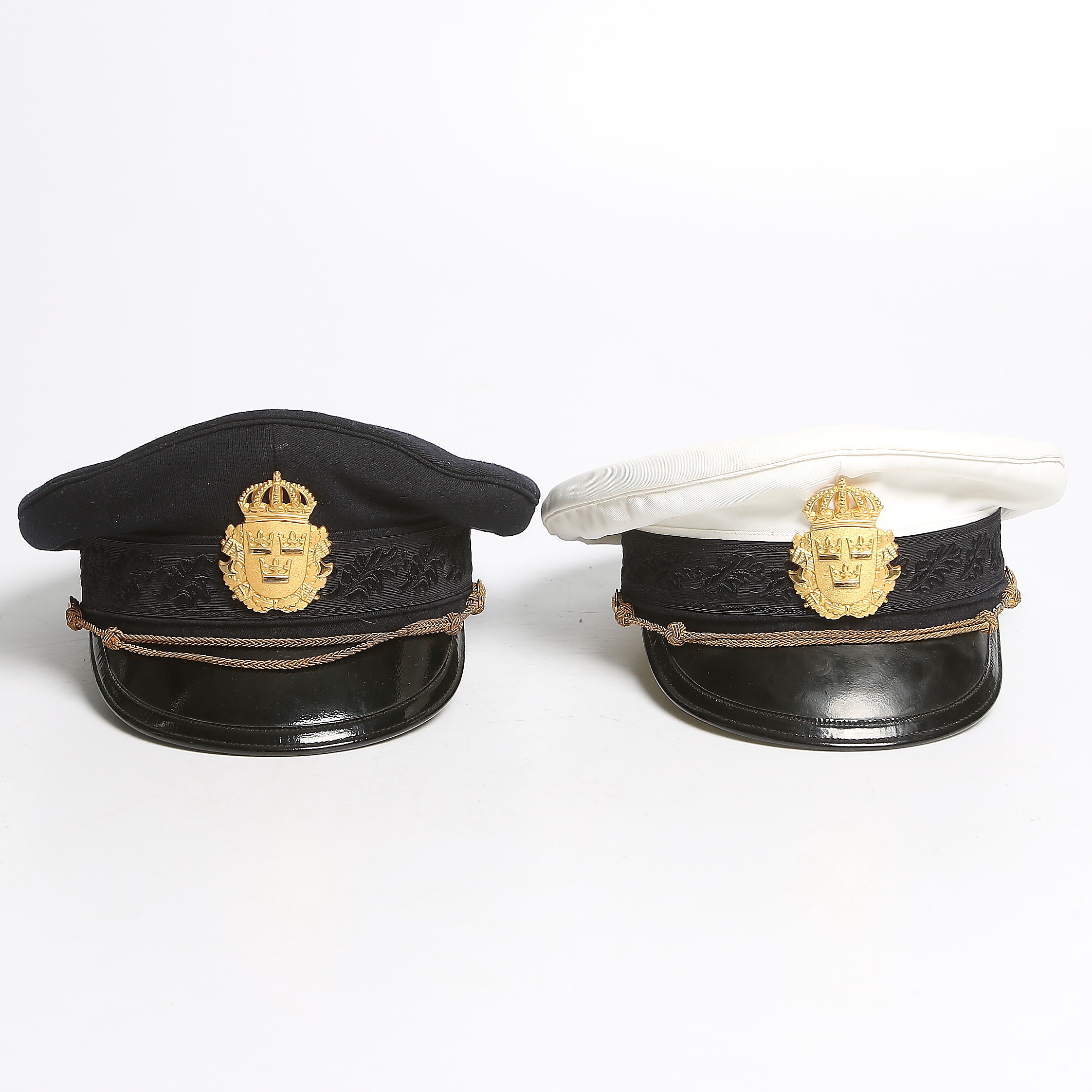 283496. UNIFORMHÜTE, 2 Stück, Polizei, erste Hälfte des 20. Jahrhunderts.