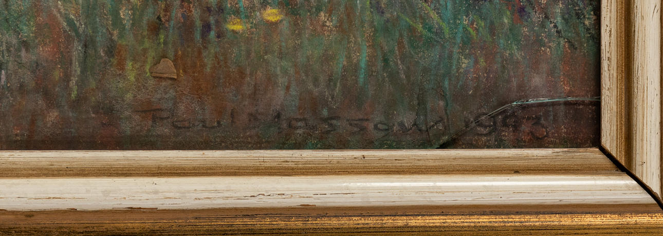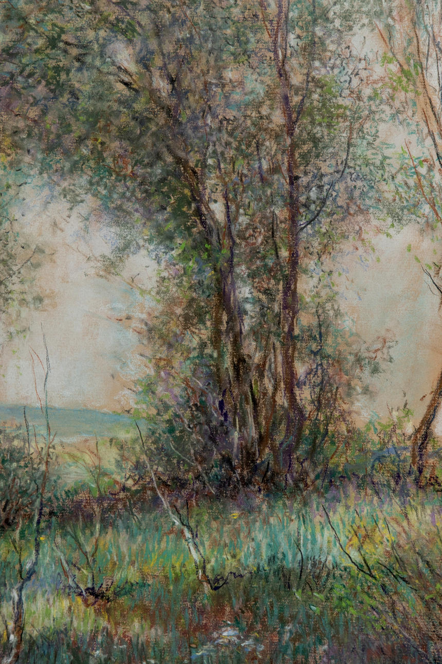 Paul Massow (geb. 1890), Frühlingslandschaft, Pastell, 1943, rechts unten signiert und datiert, ca. 68,5 x 79 cm, hinter Glas gerahmt, ca. 80 x 91,5 cm.