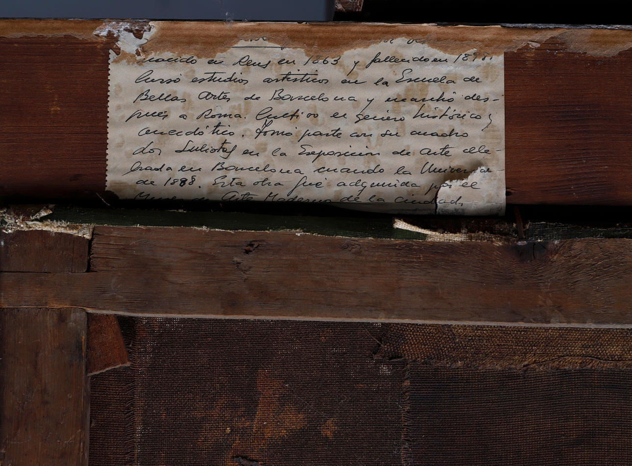 Auf der Rückseite Patches. Alte Restaurierung und Wiedereinsetzungen. Rahmen aus geformtem und vergoldetem Holz mit Fehlern.