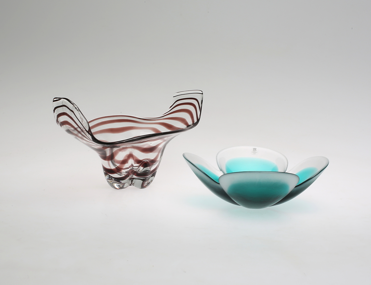 284067. Schalen, 2 Stück, Kalmar Glashütte und Målerås.