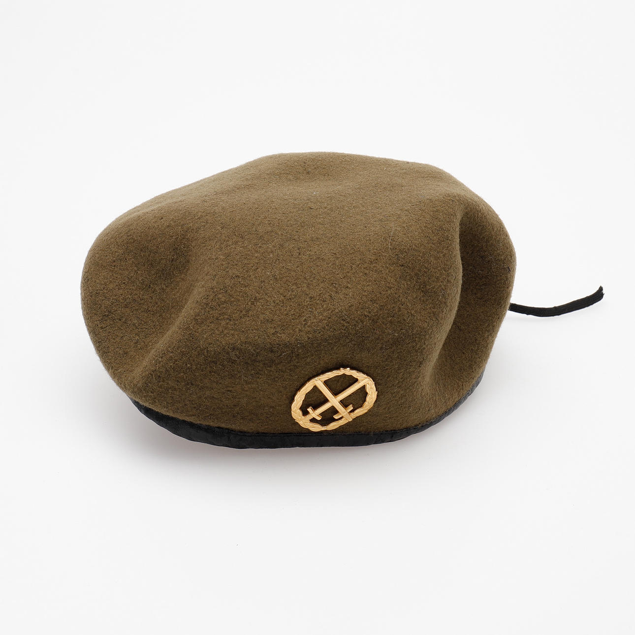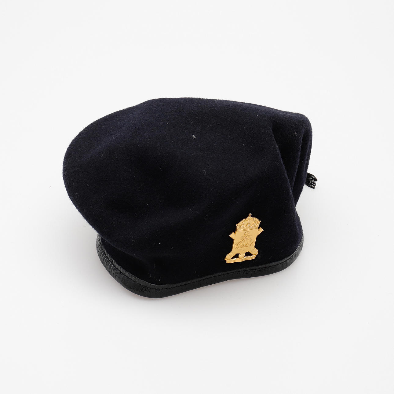 4 Baskenmützen, Armee und Marine. 5 Stück mit militärischen Zeichen.