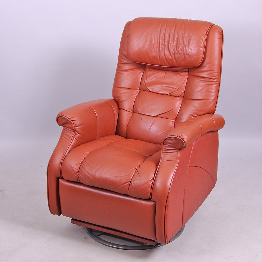 284246. SPINNING ARMCHAIR, braunes Leder.