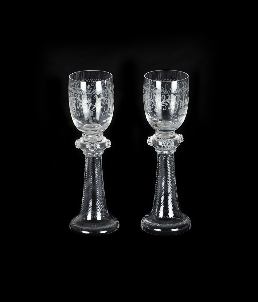 2848722. GLASHÜTTE THERESIENTHAL. Ein Paar antike Weingläser. Datierung um 1900.