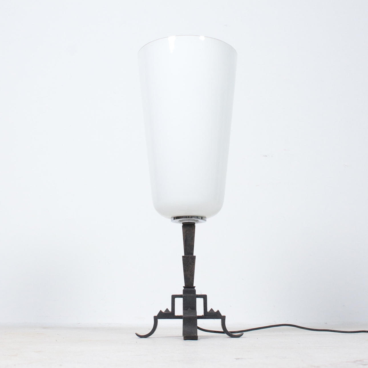 Tischleuchte, Wiener Werkstätten, weißer Glasschirm,