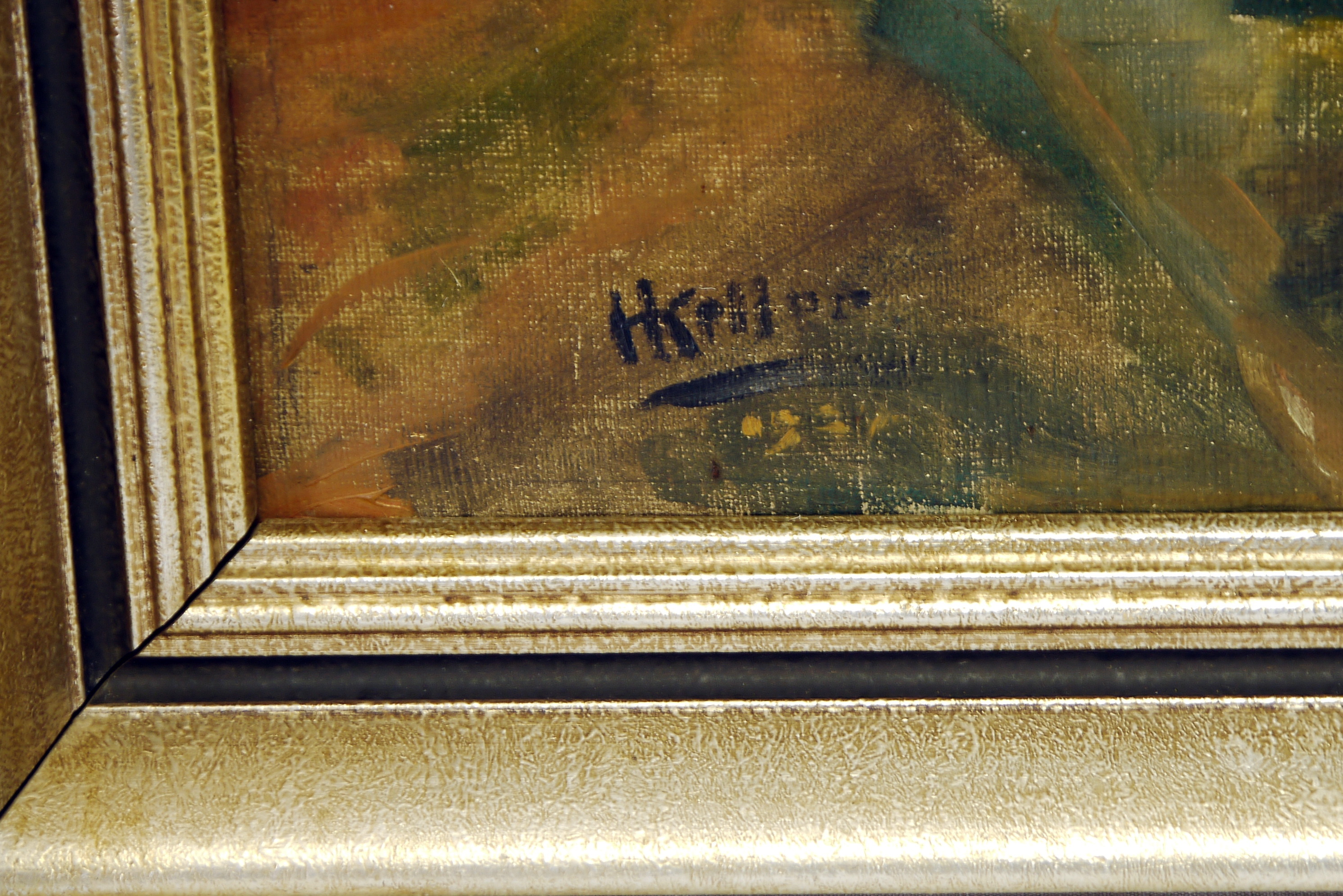 285551. KELLER, H. "Häuser", Öl auf Leinwand.